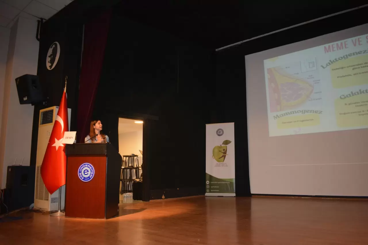 “Mucizevi Besin Anne Sütü” başlıklı ilk sunumu Doç. Dr. Reci Meseri ve Arş. Gör. Dr. Rana Nagihan Akder eşliğinde Elif Şen gerçekleştirdi. Beslenme ve Diyetetik Bölümü öğrencisi Elif Şen;