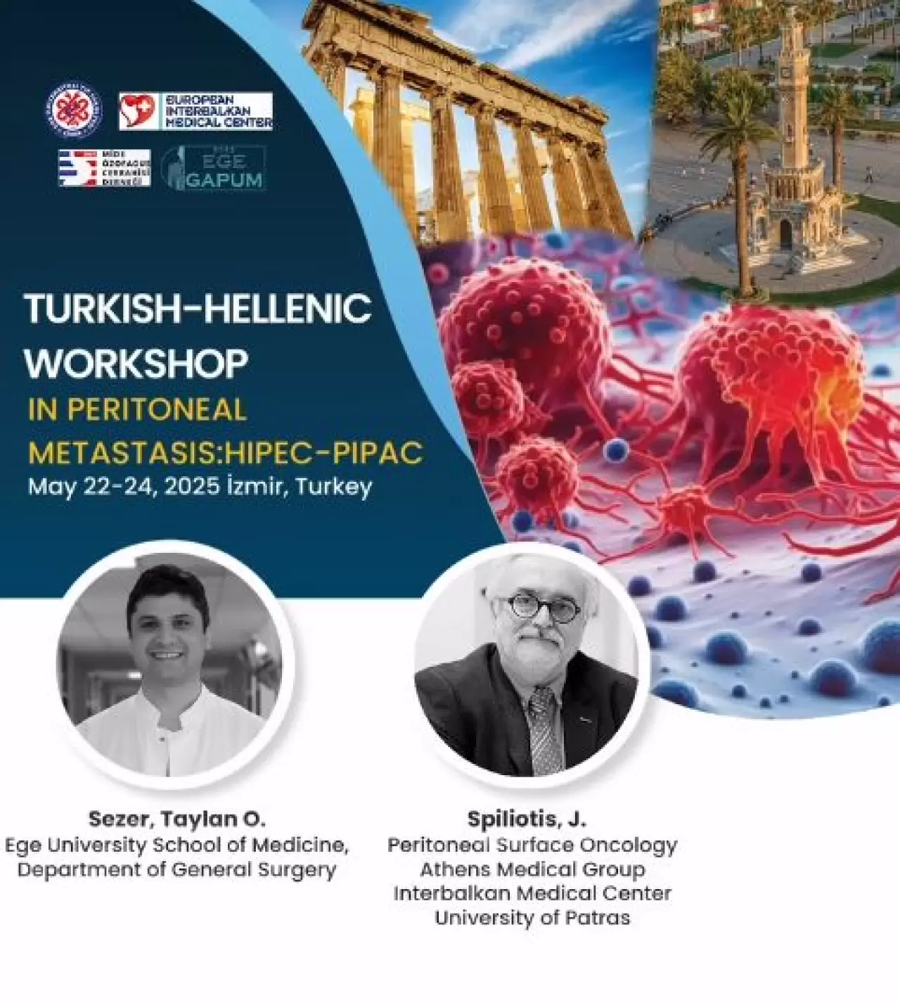 Ege Üniversitesi Tıp Fakültesi (EÜTF), EÜ Girişimsel Anatomi ve Plastinasyon Uygulama Araştırma Merkezi (EGEGAPUM), Avrupa Interbalkan Tıp Merkezi ve Mide Özofagus Cerrahisi Derneği iş birliğinde “2.Türk-Selanik Peritoneal Metastazda HİPEK ve PİPAK Workshop”u düzenlenecek. 22-24 Mayıs tarihlerinde EÜ Tıp Fakültesi Muhittin Erel Amfisinde düzenlenecek etkinlikte Türkiye’den ve Yunanistan’dan hekimler uzman oldukları konularda katılımcılar bilgilendirecek.