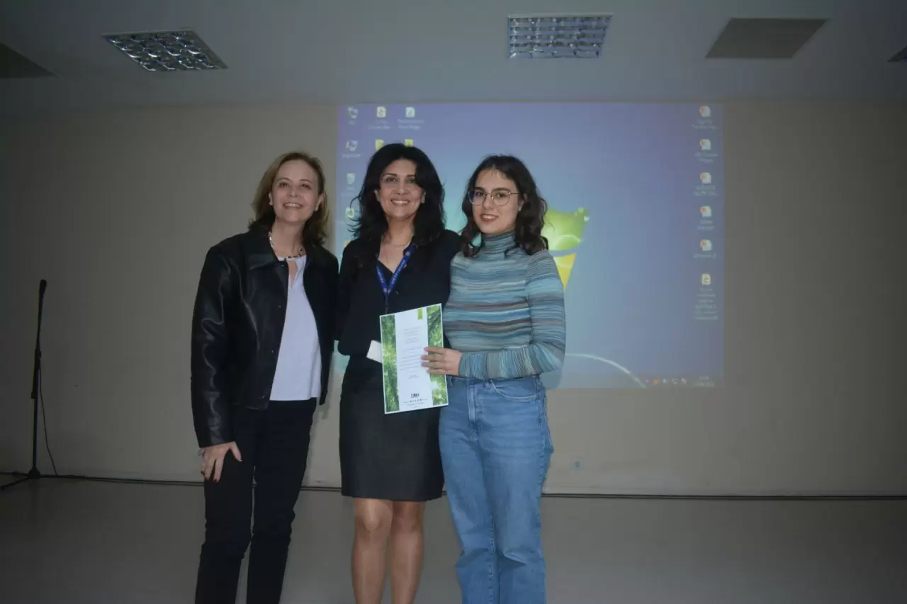 Programın sonunda EMSA topluluğu üyesi öğrenciler, Doç. Dr. Fatma Sert, Dr. Öğr. Üyesi Özge Aslan ve Doç. Dr. Fuat Kızılay’a fidan bağışını temsil eden ödüllerini vererek "Teşekkür Belgesi" takdim edildi.