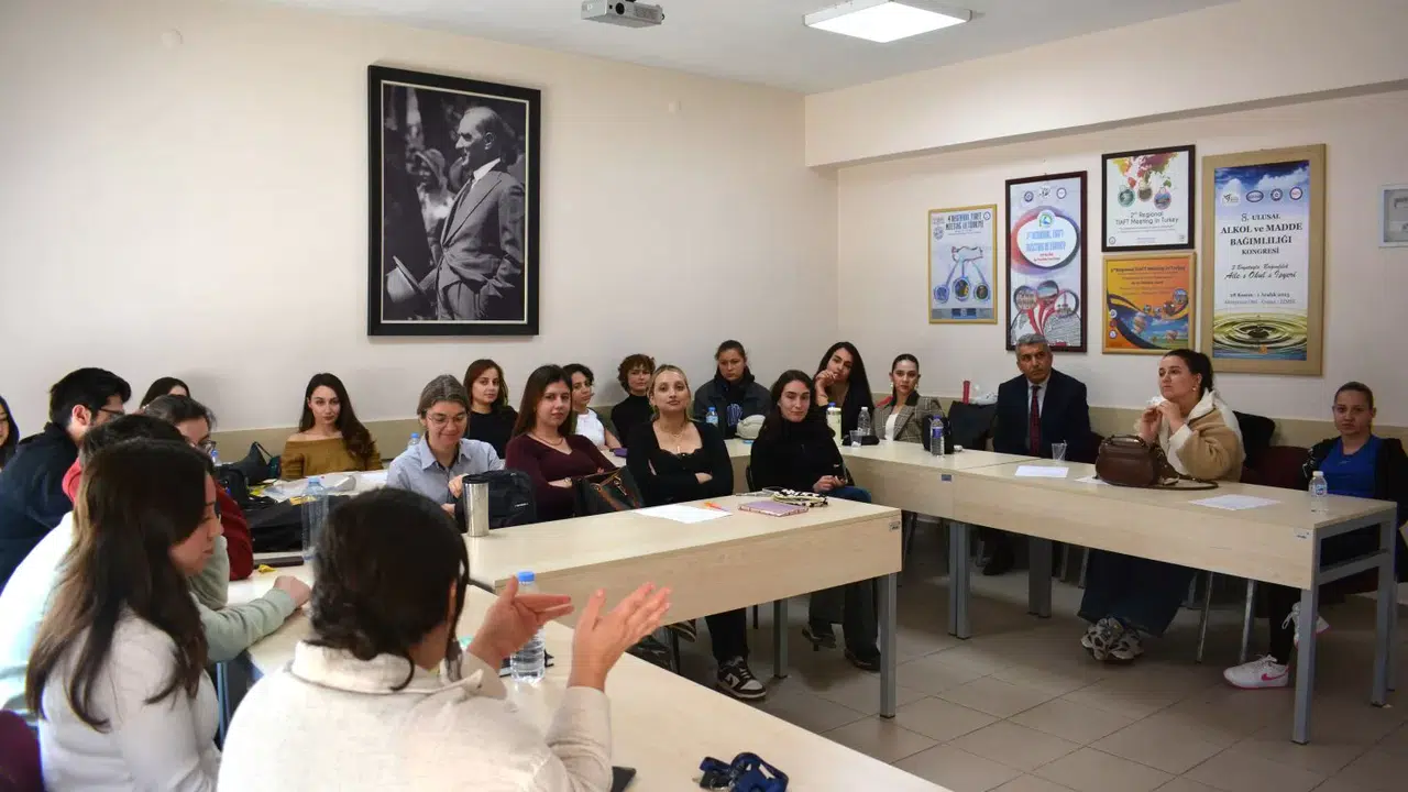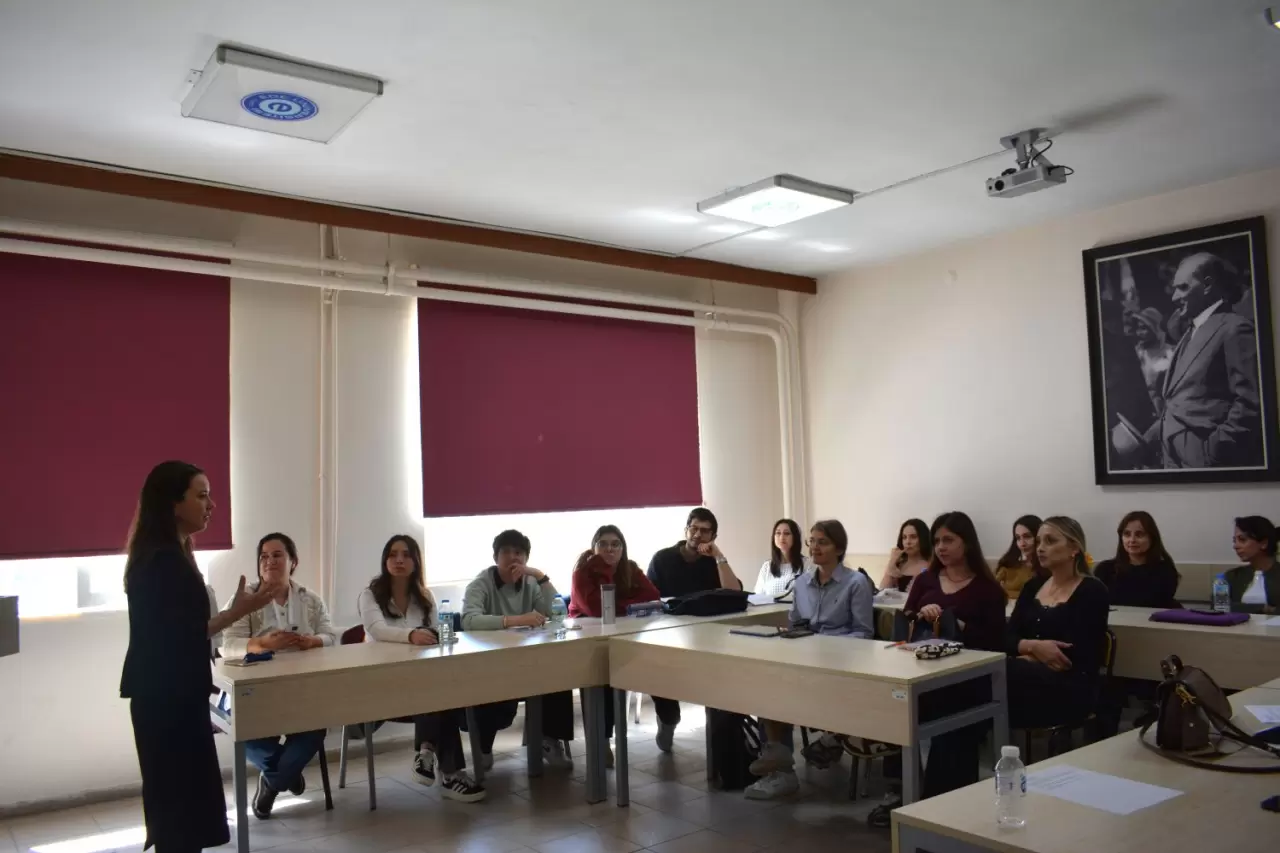 Söyleşide öğrencilerle interaktif bir yöntem izleyen Öğr. Gör. İnci Derya Yücel;