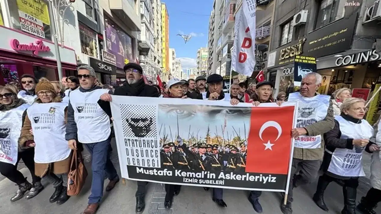 İzmir’de Atatürkçü Düşünce Derneği (ADD), Eğitim-İş ve çeşitli sivil toplum kuruluşları, Türk Silahlı Kuvvetleri’nden ihraç edilen beş teğmen ve üç komutan için sokağa indi. Kararın hukuka aykırı olduğunu savunan grup, Konak ilçesindeki Kıbrıs Şehitleri Caddesi'nde bir araya gelerek protesto yürüyüşü gerçekleştirdi.