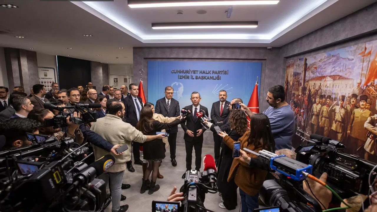 Toplantı öncesi basın mensuplarının sorularını yanıtlayan CHP Lideri Özel, “İzmir İl Başkanlığı’mızdayız. Bugün İzmir’deki tüm ilçe belediyelerimizin ve Büyükşehir Belediyemizin yapmış oldukları çalışmalarla ilgili kapsamlı bir değerlendirme raporunu ve bunun halkta yarattığı memnuniyeti, güçlü yanlarımızı, daha çok güçlendirilmesi gereken yanlarımızı konuşacağımız değerlendirme toplantımız var. Türkiye’de çok acılı bir gündemin içindeyiz. Ama hemen öncesinde de sonrasında da Sayın Erdoğan’ın talimatlarıyla, İstanbul Başsavcısı’nın eliyle Türkiye’de siyaset, yargı tacizi altındadır. Türkiye’de gündem yargı tacizi altındadır. Devam eden soruşturmalar ve bu soruşturmalara ilişkin olarak atılan tüm adımlar ile Türkiye’yi gerçek gündeminden uzaklaştırmaya ve korku iklimi oluşturmaya çalışıyorlar. Biz bu iklime teslim olmamak için elimizden geleni yapıyoruz. Maalesef Sayın Erdoğan ve saray rejimi dediğimiz düzen bundan fayda görüyor. Çünkü Türkiye’nin gerçek sorunlarını konuşmak yerine bir gerginlik, bir stres, bir kavga üzerinden gündemin ilerlemesini tercih ediyorlar” şeklinde konuştu.