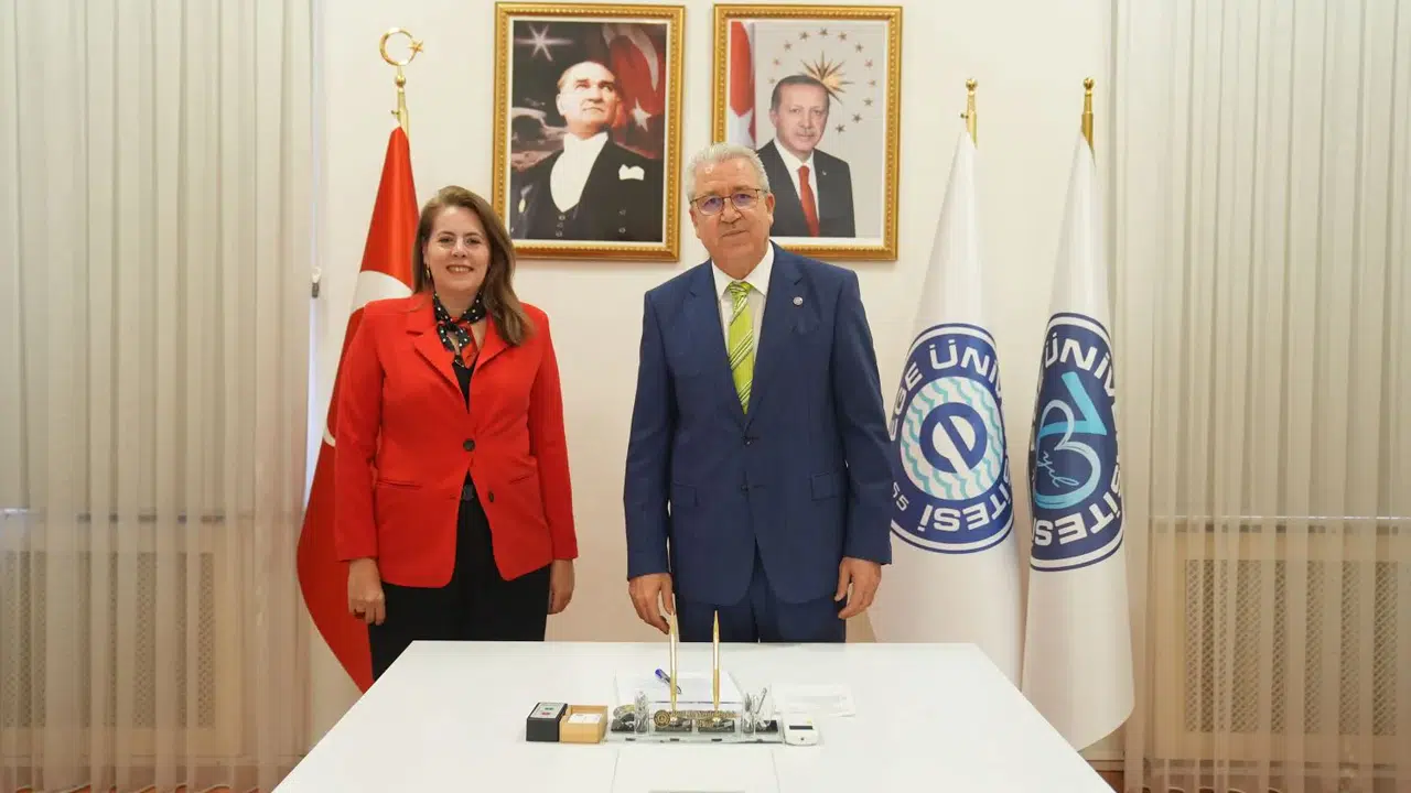 Faydalı Model Belgesi kazanan Prof. Dr. Şebnem Çınar Yücel ve Deniz Tekin’i makamında ağırlayarak tebrik eden Ege Üniversitesi Rektörü Prof. Dr. Necdet Budak, “Üniversitemizde üretilen bilimsel projeler, faydalı ürünlere dönüşmeye devam ediyor. Akademisyenlerimiz ve mezunlarımızın ortak çalışmalarıyla ortaya çıkan ‘Güvenli İlaç Hazırlama Önlüğü’ projesi, sağlık çalışanlarının iş güvenliği açısından son derece değerli.  Faydalı Model Belgesi almaya hak kazanan buluşlarından ötürü Prof. Dr. Şebnem Çınar Yücel hocamızı ve mezunumuz Deniz Tekin’i tebrik ediyor, başarılarının devamını diliyorum” dedi.