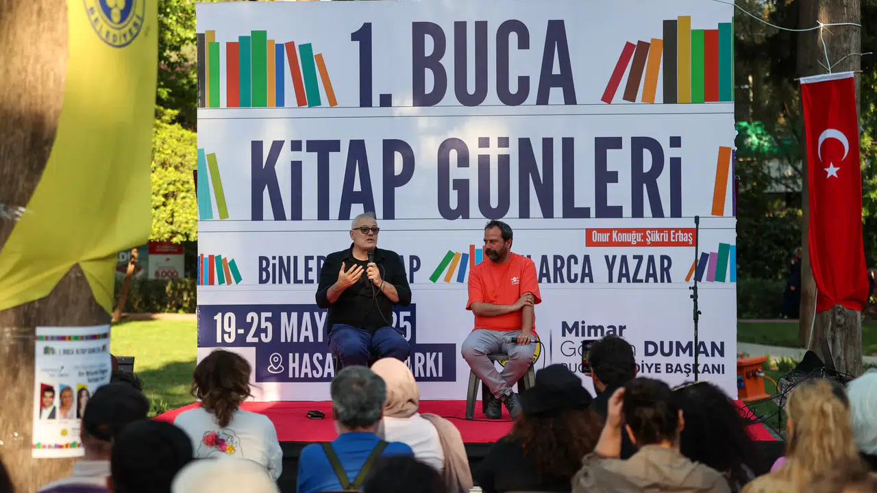 25 Mayıs tarihine kadar sürecek olan 1.Buca Kitap Günleri’nin 21 Mayıs Çarşamba günündeki konukları saat 18.00’de “Pasaport’tan Kordon’a” başlıklı söyleşi ile Murat Şahin, Duygu Süphandağ Yaman, Nergis Seli, saat 19.00’da “Sırlarım İpte Asılı Kaldı Balım” ile Kübra Yeter ve saat 21.00’de “İtirazın Mizahı” gösterisiyle Müfit Can Saçıntı olacak. Kitap Günleri’nin 22 Mayıs Perşembe
