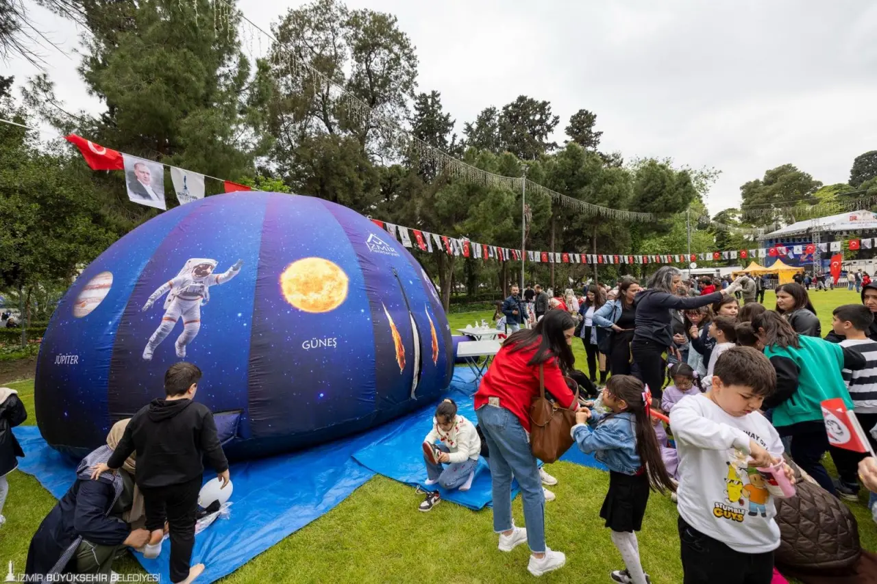 Alan genelinde kurulan planetaryum deneyimi, karnaval oyunları, parkur alanları ve çeşitli oyun grupları çocuklara farklı deneyimler sunarken, aile etkinlik alanında ebeveynler çocuklarıyla birlikte keyifli vakit geçirdi. Gezici Kütüphane, spor deneyim alanı ve uygulama noktaları da gün boyunca yoğun ilgi gördü. Etkinlik alanında oluşturulan çadır bölümünde ise İzmir Büyükşehir Belediyesi birimleri ve sivil toplum kuruluşlarının katkılarıyla 25’ten fazla atölye düzenlendi. Çocuk hakları, sanat, bilim ve doğa temalı atölyelerde çocuklar aktif olarak üretim süreçlerine katıldı. Kültürpark'da devam eden 7. İzmir Kitap Fuarı da kutlamalara katılan çocuklar ve ailelerin duraklarından biri oldu. Gün boyu süren etkinlikler, hem çocuklar hem de aileler için unutulmaz anlara sahne oldu.