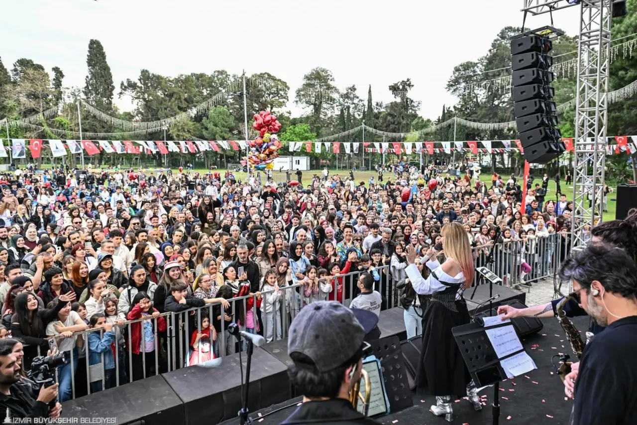 İzmir’de 23 Nisan Ulusal Egemenlik ve Çocuk Bayramı, sabahın erken saatlerinden akşam saatlerine kadar büyük bir coşku ve yoğun katılımla kutlandı. İzmir Büyükşehir Belediyesi’nin Kültürpark’ta düzenlediği etkinlikler, gün boyunca çocuklar ve ailelerden büyük ilgi gördü. Kutlamaların son programında sahne alan pop müziğin sevilen ve renkli ismi Gökçe, özellikle çocuklar ve ailelerin yoğun ilgisiyle karşılandı. Sanatçı, konsere, sevilen şarkısı “Tuttu Fırlattı Kalbimi” ile başladı; alanı dolduran binlerce kişi şarkıya hep bir ağızdan eşlik etti. Yaklaşık bir buçuk saat sahnede kalan Gökçe, “Napardım Bilmem” gibi hit parçalarının yanı sıra hareketli repertuvarıyla dinleyicilere yüksek tempolu bir konser yaşattı. Gökçe, enerjisi ve sahne performansının yanı sıra izleyiciyle kurduğu güçlü iletişimle dikkat çekti. Her yaştan müzikseverin yoğun ilgi gösterdiği konser, “Parla” ile sona erdi.