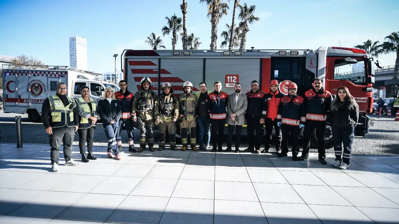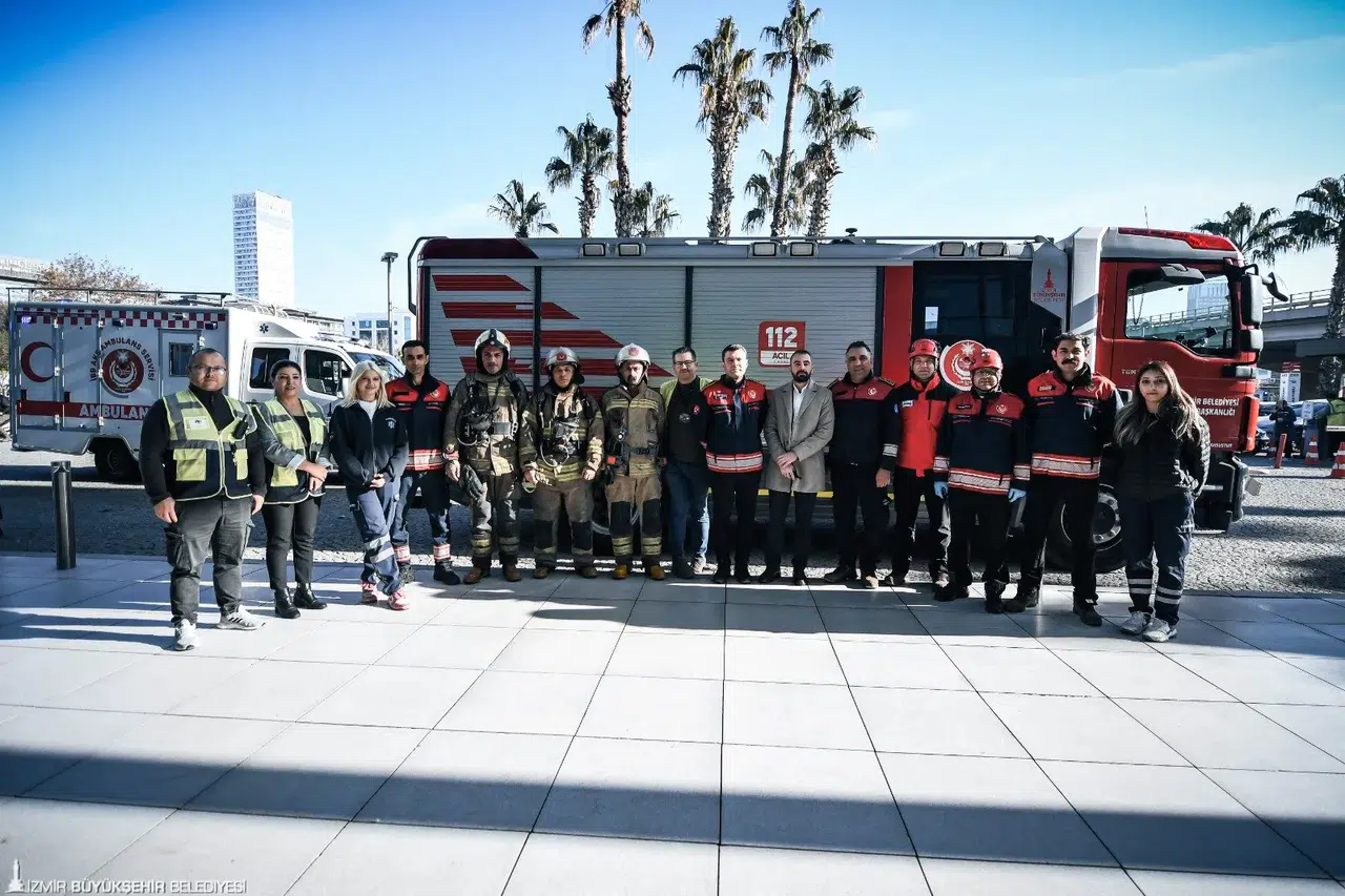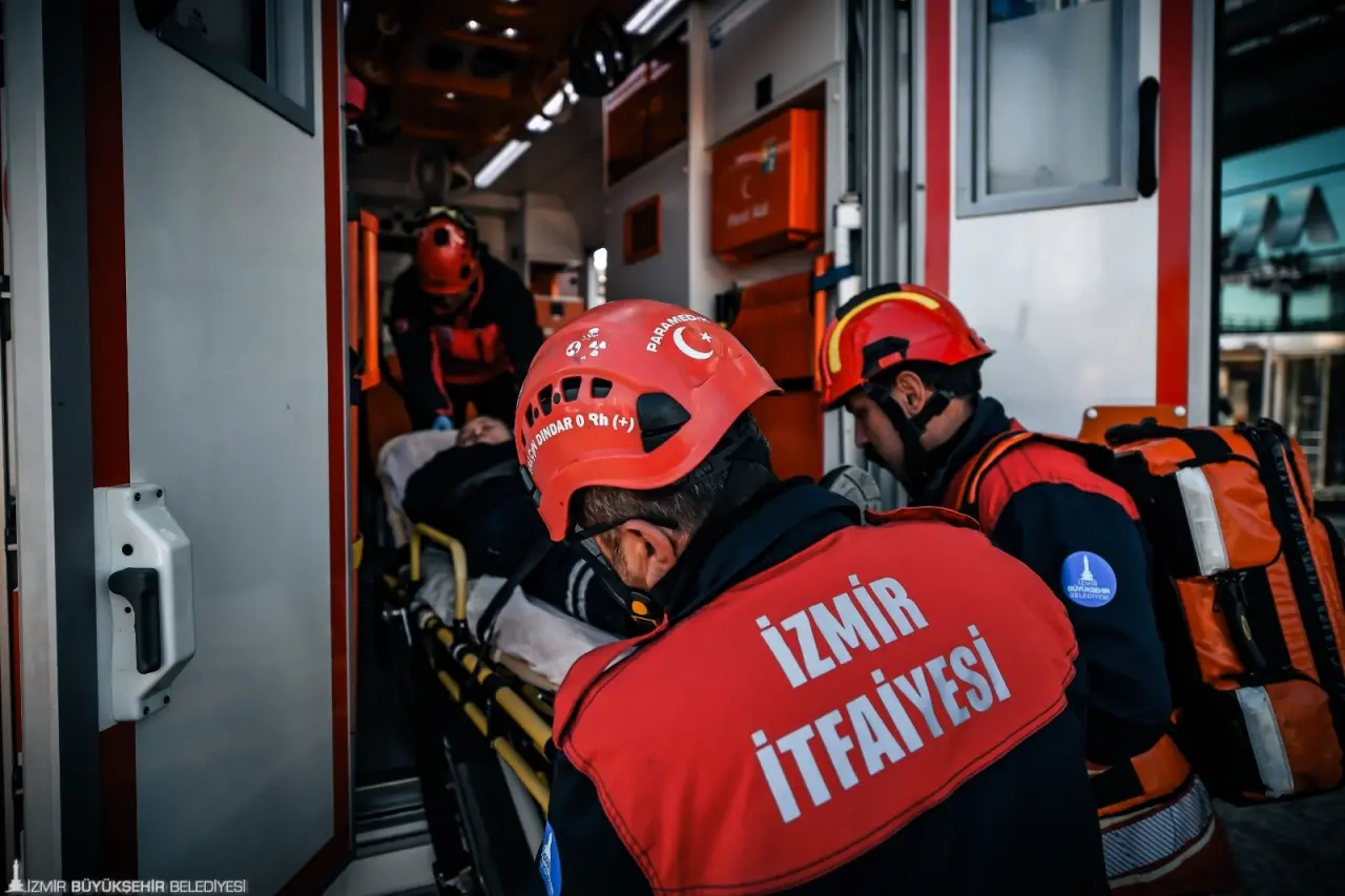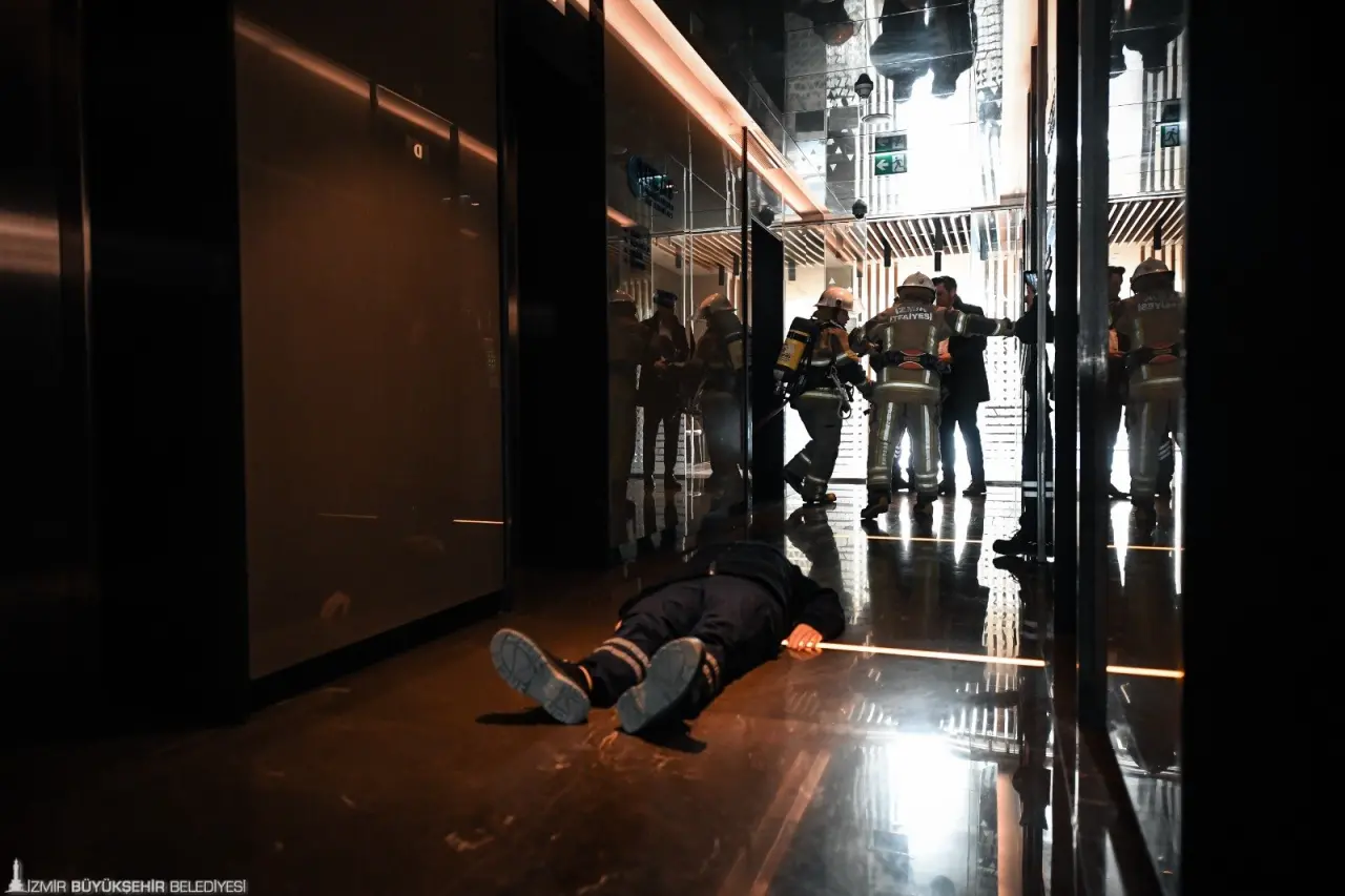İzmir Büyükşehir Belediyesi İtfaiye Dairesi Başkanlığı ekipleri, yüksek katlı binalarda olası yangın ve acil durumlara hazırlık amacıyla Bayraklı gökdelenler bölgesinde bulunan 47 katlı bir binada kapsamlı bir yangın ve arama kurtarma tatbikatı gerçekleştirdi. Senaryoya göre, binanın 11. katındaki temizlik odasında sigaranın söndürülmeden atılması sonucu çıkan yangın kısa sürede büyüdü. Çalışanlar 112 Acil Çağrı Merkezi’ne haber verdi. Olay yerine hızla ulaşan itfaiye ekipleri, mahsur kalan bir personeli güvenli şekilde kurtarırken, yangını da kontrol altına aldı. Dumandan etkilenen kişi AKS ekiplerince ilk müdahaleyi aldı.