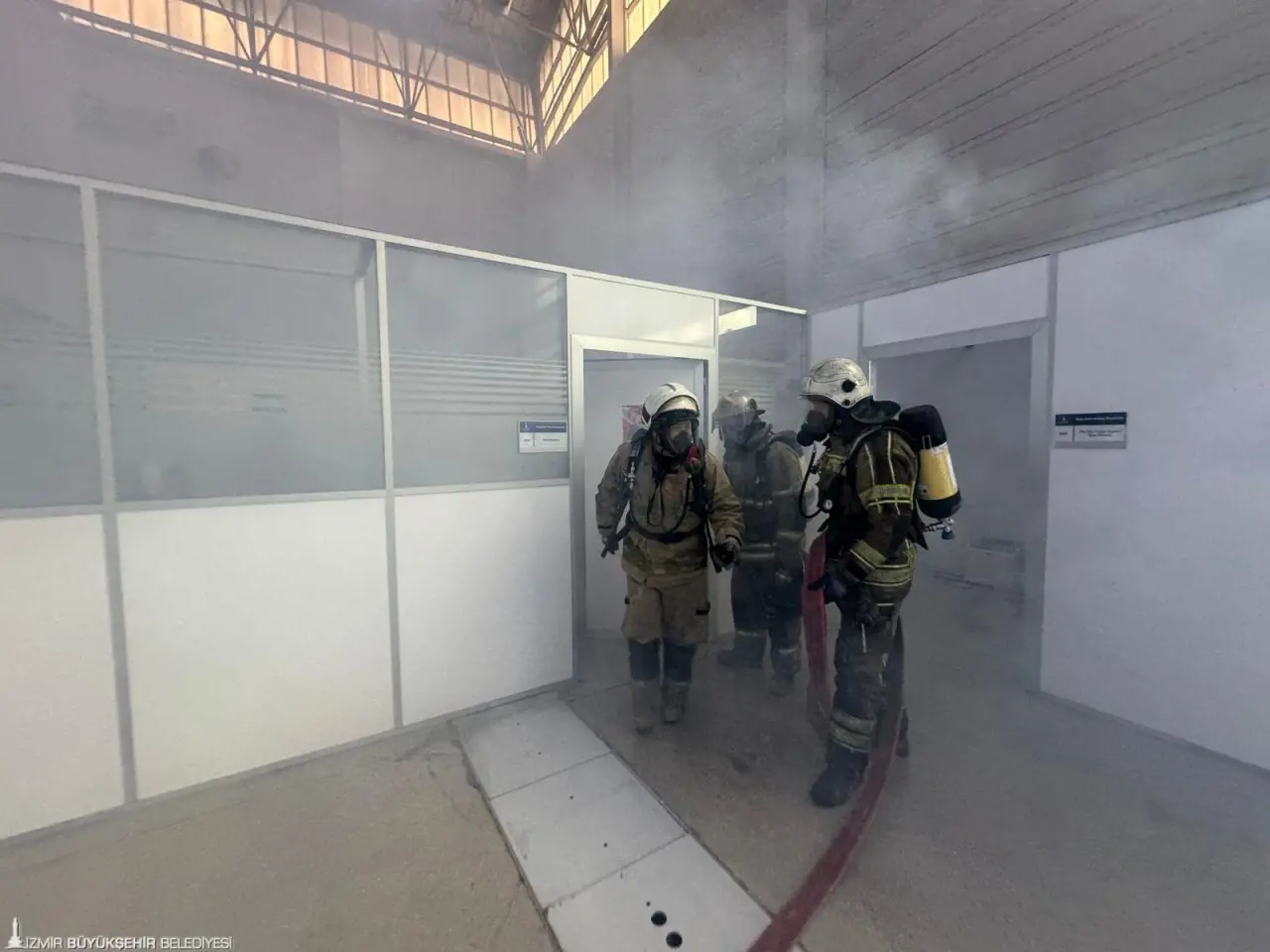 İzmir Büyükşehir Belediyesi, olası afet durumlarına hazırlık kapsamında Kültürpark içerisinde binlerce personelin bulunduğu 4 holde eş zamanlı deprem ve yangın tatbikatı yaptı. Tatbikatta senaryo gereği önce deprem meydana geldi. Ardından yangın çıktı. Durumun itfaiye ekiplerine bildirilmesi üzerine olay yerinde hemen arama ve kurtarma çalışmaları başlatıldı. Yine senaryo gereği hollerde çalışanlar da tahliye edildi. Ekipler, içeride 5 kazazedenin bulunduğu yönündeki bilgi üzerine çalışmalarını genişletti.