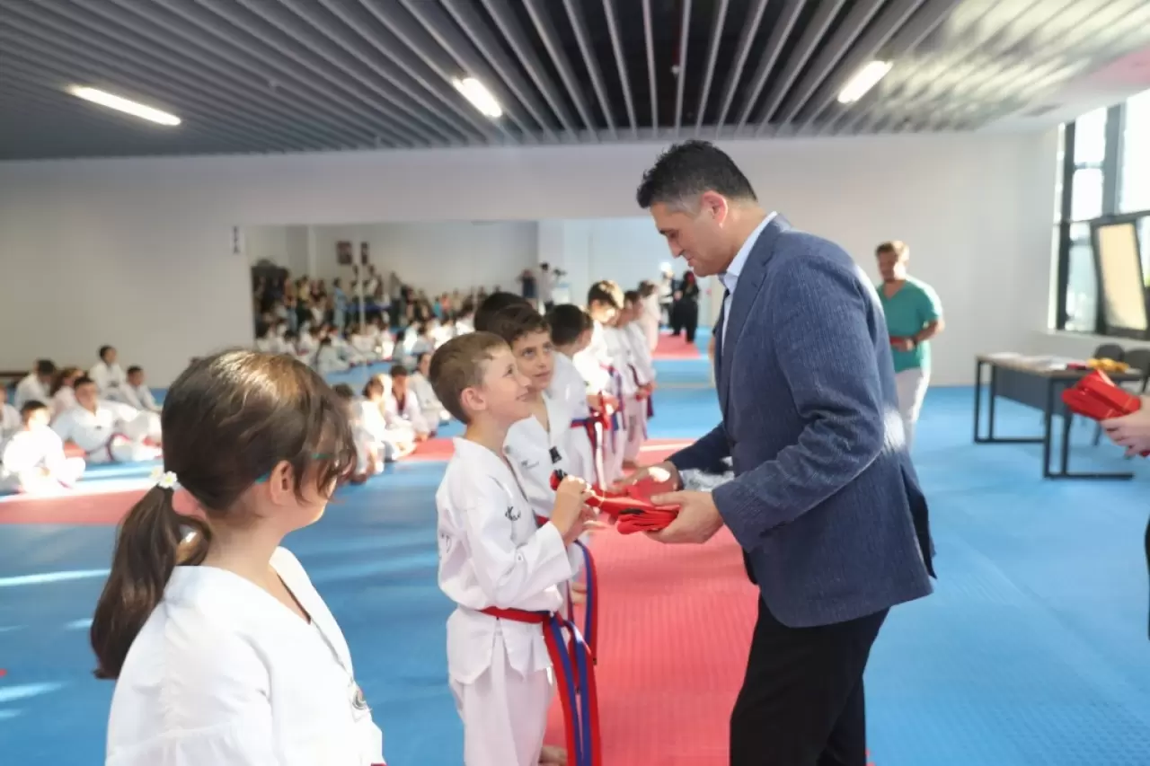 Aliağa Gençlik Merkezi Spor Kulübü'nün Taekwondo kursunun 100 öğrencisi kuşak geçme sınavını başarıyla tamamladı. Sınav sonrası sporcular yeni kuşaklarını Aliağa Belediye Başkanı Serkan Acar’ın elinden aldı. Yeni kuşaklara terfi eden sporcular, aynı zamanda ulusal ve uluslararası düzeyde düzenlenecek önemli turnuvalarda mücadele etme hakkı da kazandı.