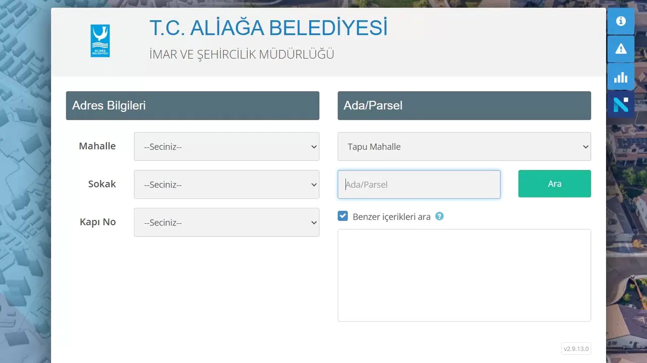 Vatandaşlar imar durumu sorgulaması yapmak için, Aliağa Belediyesi’nin resmi web sitesi “aliaga.bel.tr” ana sayfasında yer alan ‘E-İmar’ sekmesine girerek sorgulama ekranına ulaşacak. Vatandaşlar, açılan ekranda adres bilgilerini veya ada parsel bilgilerini girerek imar durumunu kolaylıkla sorgulayabilecek ve plan notlarına erişebilecek. Ayrıca imar durumu çıktı ekranında; plana ilişkin bilgiler, plan sınıfı, yapılaşma bilgileri, kadastro bilgileri, ada parselin adres ve konum bilgisi yer alacak. Sorgulanan imar durumları sadece vatandaşların bilgi alması için olacak ve resmi işlerde kullanılamayacak. Vatandaşların resmi işlemler için ilgili müdürlüğe gelmeleri gerekecek.