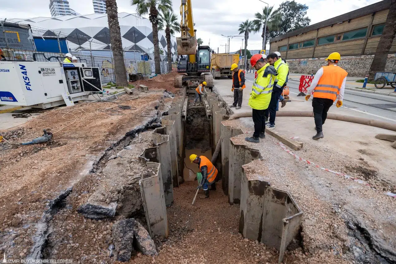 İzmir Büyükşehir Belediyesi İZSU Genel Müdürlüğü’nün, kentin altyapısını uzun yıllar boyunca güvenli ve sürdürülebilir bir şekilde yenilemeyi hedefleyen büyük ölçekli yatırımları devam ediyor. Konak, Bayraklı ve Karabağlar ilçelerinde toplam 3 milyar liralık altyapı yatırımı ile İzmir’in altyapısında tarihi bir dönüşüm başlatıldı. Dünya Bankası finansmanı ile yürütülen Türkiye Deprem, Sel ve Yangın Acil İmar Projesi (TEFWER) kapsamında hayata geçirilen yatırımlar ile kent merkezinde birleşik sistem kademeli olarak ayrıştırılıyor. Dev projelerin Alsancak-Konak etabı kapsamında Alsancak Liman bölgesinde çalışmalar Şehitler Caddesi’nde devam ediyor.