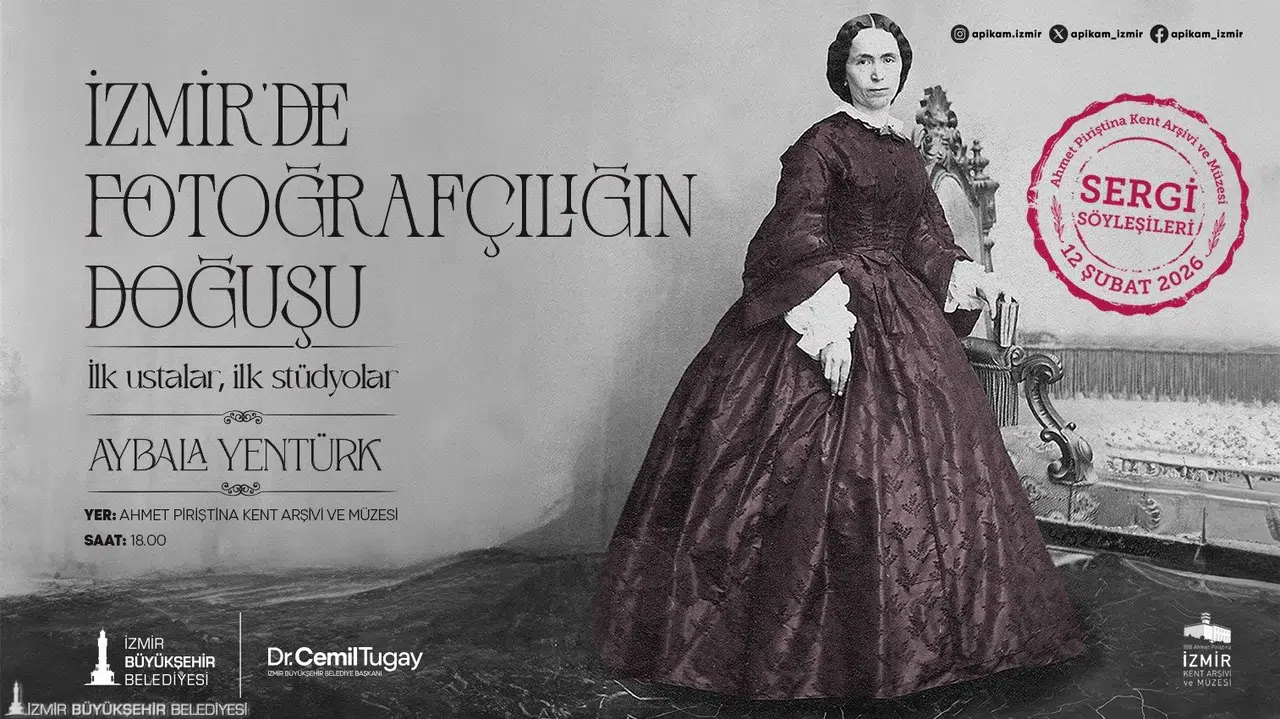 Ahmet Piriştina Kent Arşivi ve Müzesi’nin (APİKAM) yeni söyleşi dizisi “Sergi Söyleşileri”, “İzmir’de Fotoğrafçılığın Doğuşu: İlk Ustalar, İlk Stüdyolar” başlıklı oturumla 12 Şubat’ta başlıyor. “İzmir Fotoğrafhanesi – Görsel Hafızanın İnşası (1840–1922)” sergisini odağına alan söyleşinin konuğu, serginin küratörü Aybala Yentürk olacak.