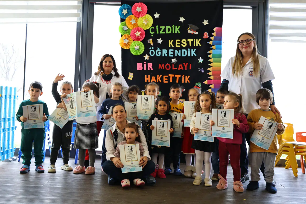 Öğretmen Hatice Kaçmaz da bir dönemin daha sonuna gelmiş olmaktan duyduğu mutluluğu dile getirerek, “Bugün öğrencilerimizin gelişim raporlarını vereceğiz. Tüm dönem boyunca ‘Dersimiz Atatürk’ dersinde ve diğer derslerimizde Atatürk’ü işledik. Tüm çocuklarımıza iyi tatiller diliyorum,” dedi.
