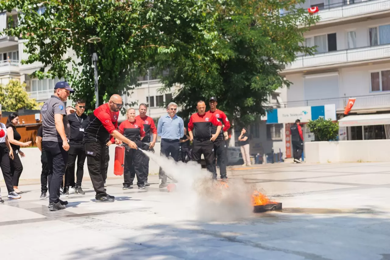 İlk olarak İzmir Büyükşehir Belediyesi İtfaiye Daire Başkanlığı’nda görev yapan eğitmenler, belediye meclis salonunda yangın söndürme eğitimi verdi. Ardından hizmet binasında sirenler çalınarak personelin de katılımıyla yangın tatbikatı gerçekleştirildi. Ayrıca hizmet binası ön kısmında bulunan Cumhuriyet Meydanı’nda yangın söndürme uygulaması yapıldı.