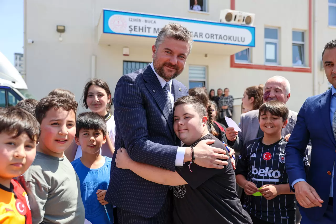 Şehit Mesut Taşar Ortaokulu'nu ziyaret eden Buca Belediye Başkanı Mimar Görkem Duman, öğrencilerin sevgi seliyle karşılandı. Başkan Görkem Duman, “Sizlerin yüzünde bir tebessüm oluşturmak, yarınlarınıza güvenle bakmanızı sağlamak bizim en büyük sorumluluğumuz” dedi.