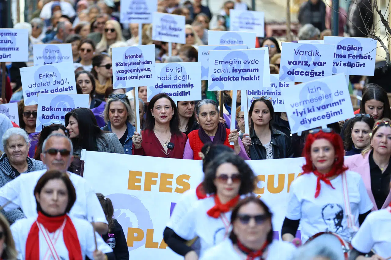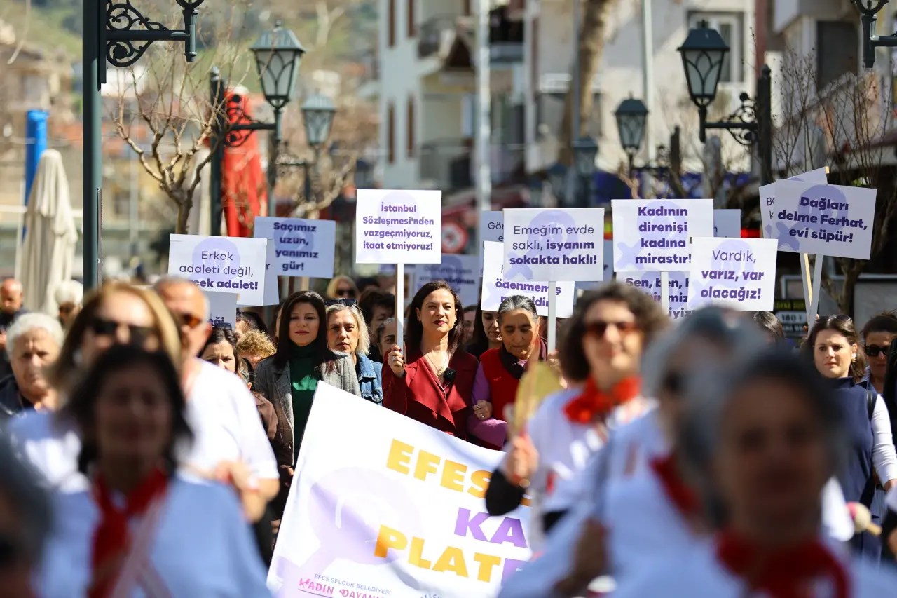 Efes Selçuk Belediyesi ile Efes Selçuk Kadın Platformu iş birliğinde düzenlenen 8 Mart Dünya Emekçi Kadınlar Günü etkinlikleri kapsamında kadınlar, Efes Selçuk Belediyesi Kadın Bando Takımı eşliğinde yürüyüş gerçekleştirdi. İstasyon Meydanı’ndan başlayan yürüyüşe Efes Selçuk Belediye Başkanı Filiz Ceritoğlu Sengel, CHP Selçuk İlçe Başkanı İpek Onbaşıoğlu, belediye meclis üyeleri, sendika temsilcileri ve çok sayıda Efes Selçuklu kadın katıldı.