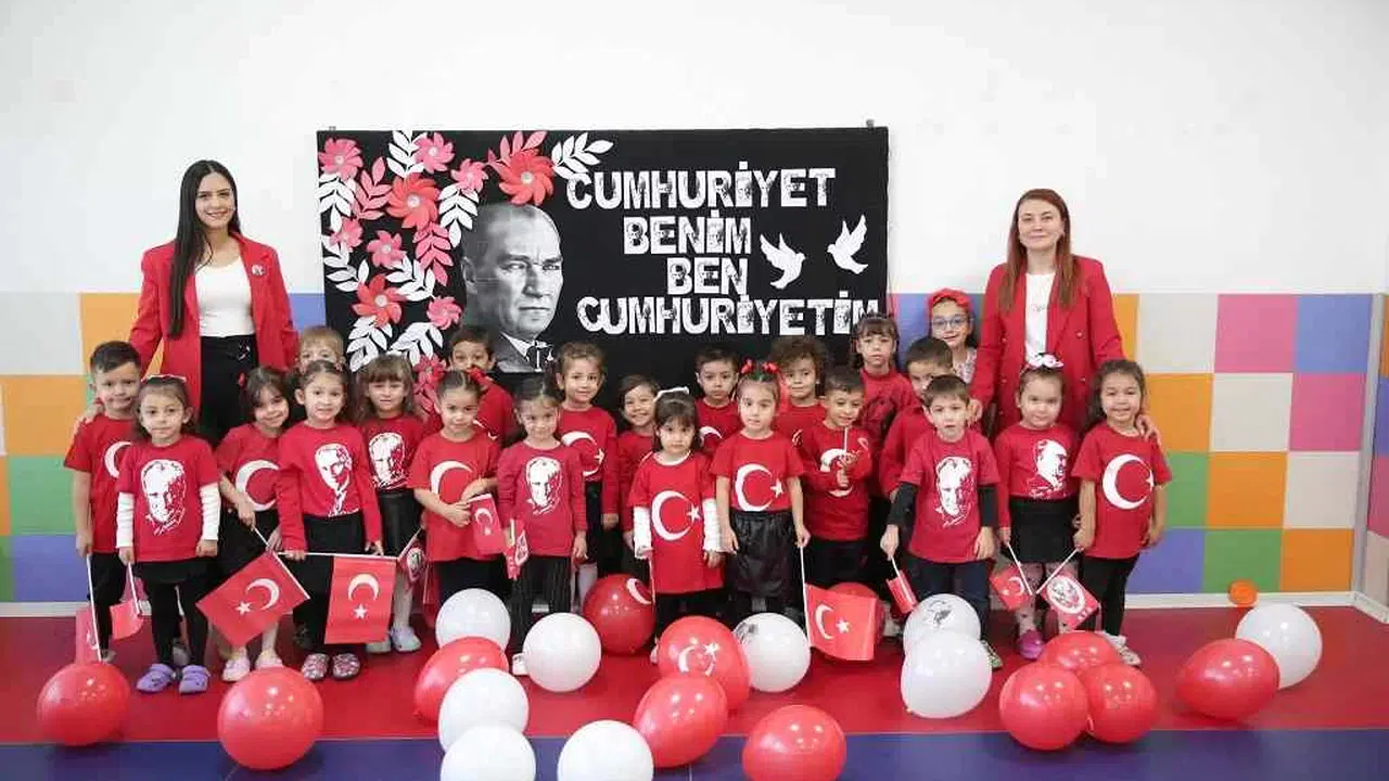 Konak Belediyesi’nin sosyal belediyecilik hizmetleri arasında yer alan ve 3-5 yaş grubuna ücretsiz okul öncesi eğitim desteği verdiği Mutlu Çocuklar Oyun Evlerinde, Cumhuriyet coşkusunu yaşatmak için kutlama programları hazırlandı. Sekiz ayrı merkezde eş zamanlı olarak gerçekleştirilen etkinlikler kapsamında önce öğretmenler tarafından günün anlam ve önemini belirten konuşmalar yapıldı. Saygı duruşu ve İstiklal Marşı’nın okunmasının ardından miniklerin hazırladığı gösterilere yer verildi. Programda Ulu Önder Mustafa Kemal Atatürk ile Cumhuriyet’i anlatan müzikler çalındı, şarkılar söylendi ve şiirler okundu. Öğretmenleri eşliğinde hazırladıkları özel gösterileri ailelerine sunan çocuklar, Cumhuriyet Bayramı coşkusunu ebeveynleriyle birlikte paylaşmanın mutluluğunu yaşadı.