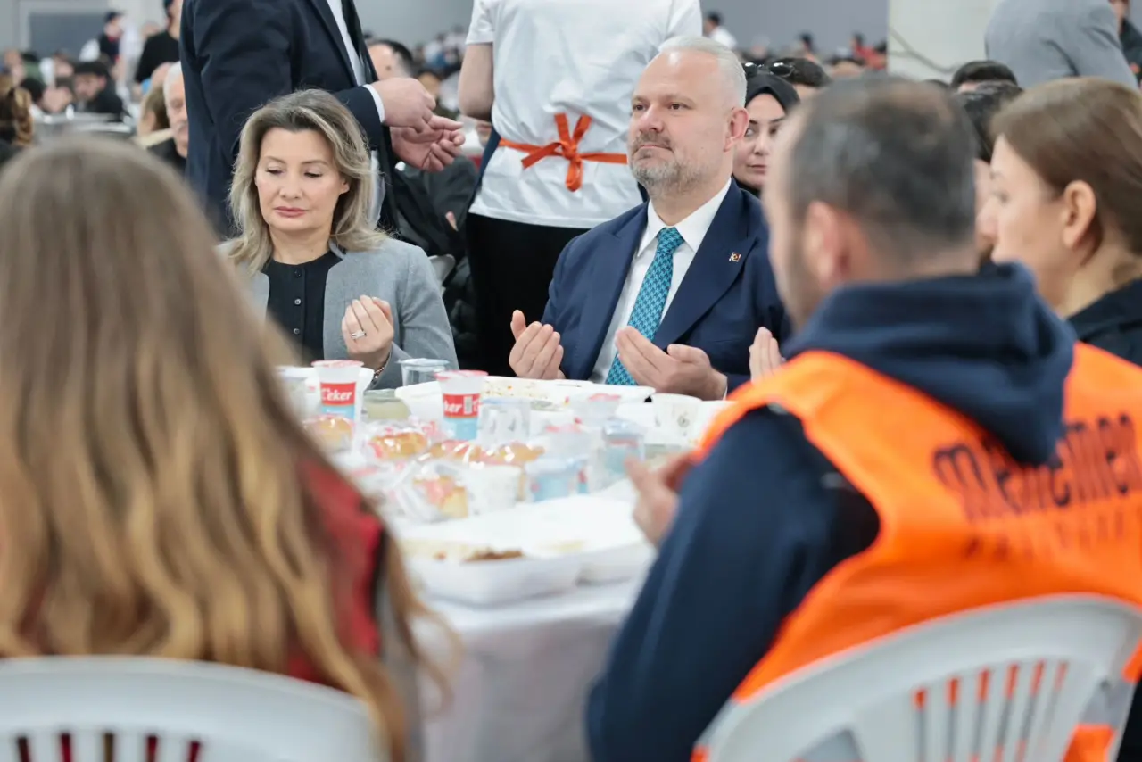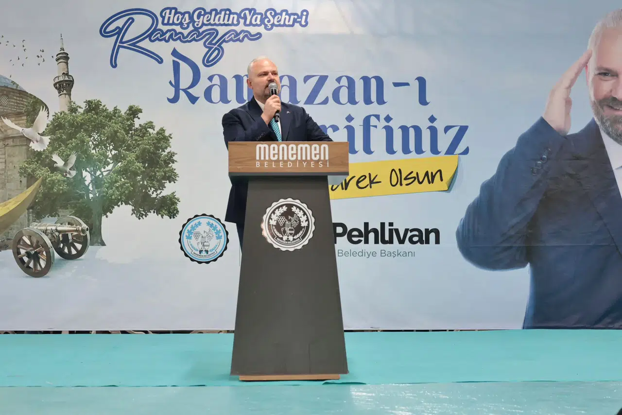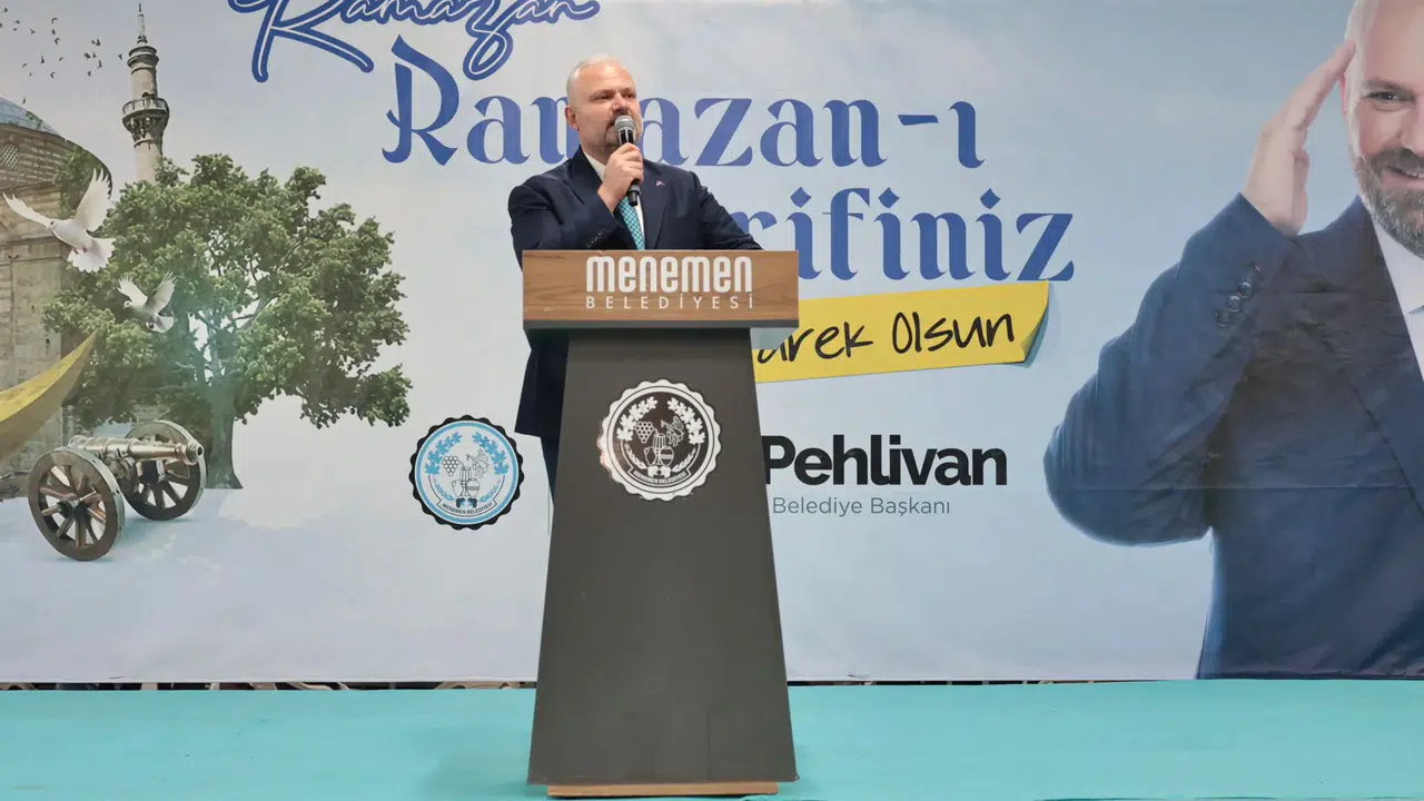 Oruçların açılması sonrası kürsüye çıkan Başkan Pehlivan, "Bugün burada sadece bir iftar için değil; birbirini anlayan, birbirine omuz veren, Menemen’in yükünü birlikte taşıyan büyük ailemizin buluşması için bir aradayız. Kıymetli mesai arkadaşlarım; bu aile öyle sıradan bir aile değil. Bu aile zoru da, sevinci de, başarıyı da birlikte yaşayan bir aile. Türkiye’nin en büyük tematik çocuk oyun köyü bugün 2 milyona yakın ziyaretçi ağırladıysa, bu ziyaretçi rekorunda sizlerin güleryüzü, alınteri ve emeği var. Menemen’de çocuklar artık yüzmeyi sulama kanalında değil, açık ve kapalı yarı olimpik yüzme havuzlarımızda öğreniyorsa bu ailenin sayesinde öğreniyor. Çaltı’dan Maltepe’ye, Seyrek’ten Türkelli’ye, Asarlık’tan Kent-2’ye bu kentin sokakları ve caddeleri temizse, başka yerlerdeki çöp dağları yoksa, Onun yerine Menemen’de çiçekler açıyorsa, bunu sağlayan bu ailedir. Yaşlılarımıza evde bakım veren, ihtiyaç sahiplerine kapı kapı her gün yemek götüren, engelliyi hastaneye taşıyan, yeni doğana ilk hediyesini veren, her Menemenlinin cenazesine ilk koşan işte bu büyük ailedir. Sizlerle birlikte Menemen’in dört bir yanına eserler kazandırmaktan, sizlerle birlikte bu kentin her köşesine hizmet ulaştırmaktan ve en önemlisi bu ailenin bir parçası olmaktan onur, gurur, şeref duyuyorum kıymetli mesai arkadaşlarım. Allah sizlerden ve emeklerinizden razı olsun! Onlarca kursa emek veren hocalarımız ve emekçilerimizden, ring servis şoförlerimize, can dostlara emek veren arkadaşlarımızdan Aynısefa’da bir kahveye kırk yıl hatır koyan arkadaşlarıma kadar her birimimizi canla başla ortaya koyduğu emekten dolayı kutluyor ve alkışlıyorum. Menemen Belediyesi, Türkiye'de örnek gösterilen bir belediye haline geldiyse bu sadece benim değil, bu hepimizin başarısıdır." dedi.
