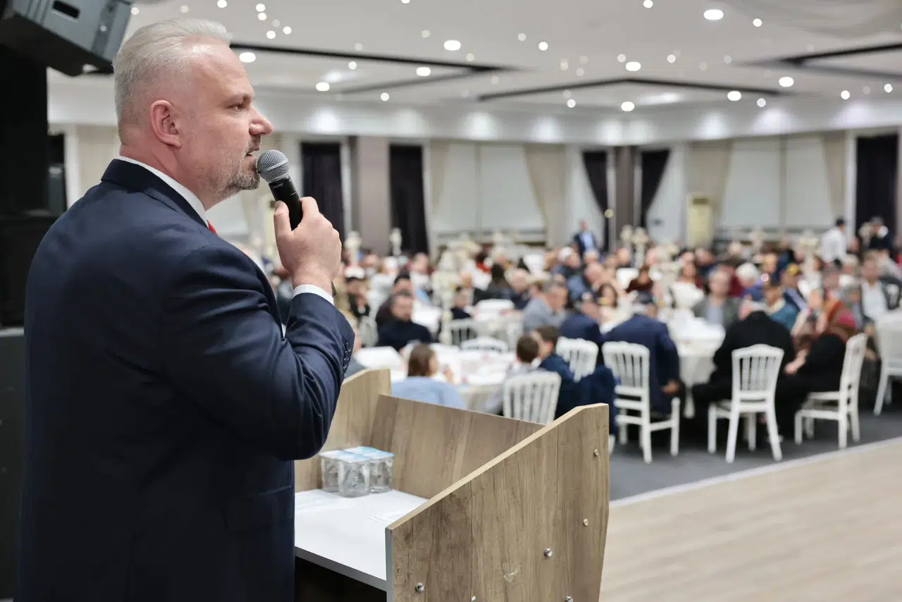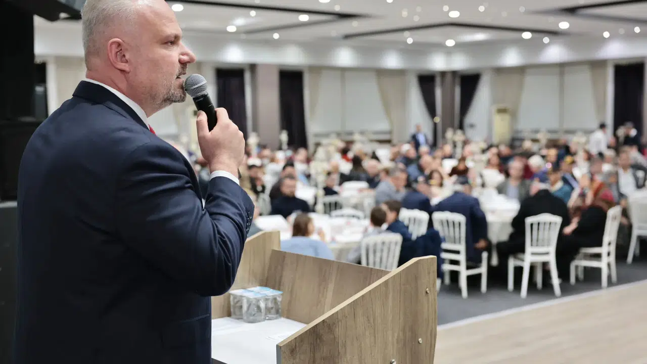 Tasavvuf dinletisi ve semah ile başlayan gecede, ezanın okunması ve oruçların açılmasının ardından bir konuşma yapan Menemen Belediye Başkanı Aydın Pehlivan, "Bu sofra; vefanın, kardeşliğin, millet olmanın ve aynı bayrağın altında tek yürek olmanın sofrasıdır." dedi. Başkan Pehlivan, "Çanakkale’den Yemen’e, Sakarya’dan terörle mücadeleye kadar bu topraklar uğruna canını feda eden tüm şehitlerimiz bu milletin baş tacıdır. Gazilerimiz ise bu milletin yaşayan onur nişanıdır. Bugün huzur içinde bir aradaysak, ay yıldızlı bayrağımız gökyüzünde özgürce dalgalanıyorsa, bunu şehitlerimizin fedakârlığına, gazilerimizin cesaretine borçluyuz. Kıymetli şehit ailelerimiz ve gazilerimiz; Menemen Belediyesi olarak sizlere sadece sözle değil, hizmetle “başımızın tacısınız” diyoruz. Sosyal desteklerde öncelik, belediye hizmetlerinde kolaylık, anma ve vefa programları, şehitlerimizin hatırasını yaşatacak çalışmalar… Bunların hiçbiri bir görev değildir. Bunların tamamı bizim için bir vefa borcudur. Çünkü biz şuna inanıyoruz: Şehidini unutan millet, istikbalini kaybeder. Biz ne şehidimizi unuturuz ne de emanetini yere düşürürüz. Sayın Kaymakamımız Vedat Yılmaz’ın önderliğinde, devletimizin tüm kurumlarıyla, muhtarlarımızla, siyasi partilerimizle STK’larımızla, şehit ailelerimiz ve gazilerimizle, 220 bini aşkın hemşehrimizle birlikte dayanışmayla ve uyum içinde Menemen’in ihtiyaçlarına odaklanan bir anlayışla çalışıyoruz. Bu şehirde vatandaşımızın derdine derman olacak her adımda bizlerle omuz omuza olan herkese yürekten teşekkür ediyorum." ifadelerini kullandı.