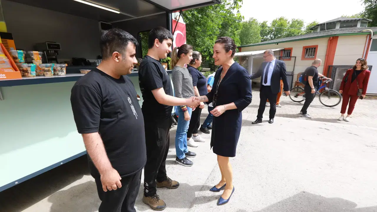Efes Selçuk Belediye Başkanı Filiz Ceritoğlu Sengel, Engelsiz Kafe’de çalışan gençleri ziyaret etti.