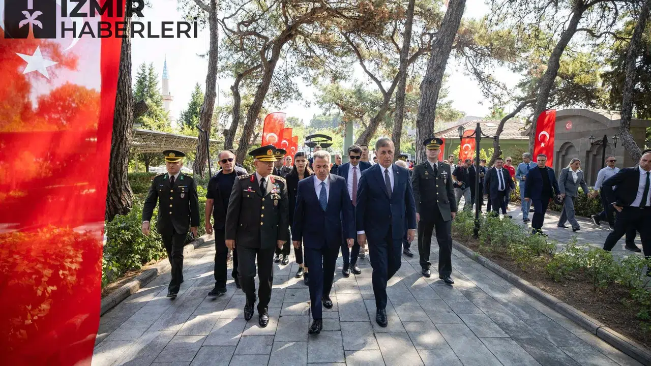 Saygı duruşunda bulunulup İstiklâl Marşı’nın okunmasıyla başlayan tören, Yeşilyurt Ulu Cami İmam Hatibi Sedat Dumlu’nun Kur’an-ı Kerim tilaveti ile devam etti. Ardından İzmir İl Müftüsü Sinan Kazancı tarafından şehitler için dua edildi. Programda İzmir Valisi Süleyman Elban şehitlik defterini imzaladı. Kent protokolü, İzmir Kadifekale Hava Şehitliği’nde bulunan şehit kabirlerine karanfiller bıraktı. Başkan Tugay, Irak’ın kuzeyinde sürdürülen Pençe-Kilit Operasyonu bölgesinde metan gazından etkilenerek 6 Temmuz’da şehit olan Piyade Üsteğmen Ege Akar ve Libya'da görev yaparken kalp krizi sonucu 27 Haziran’da şehit olan Hava Pilot Albay İsmail Haldun Maden'in kabirlerinin başında da dua etti.