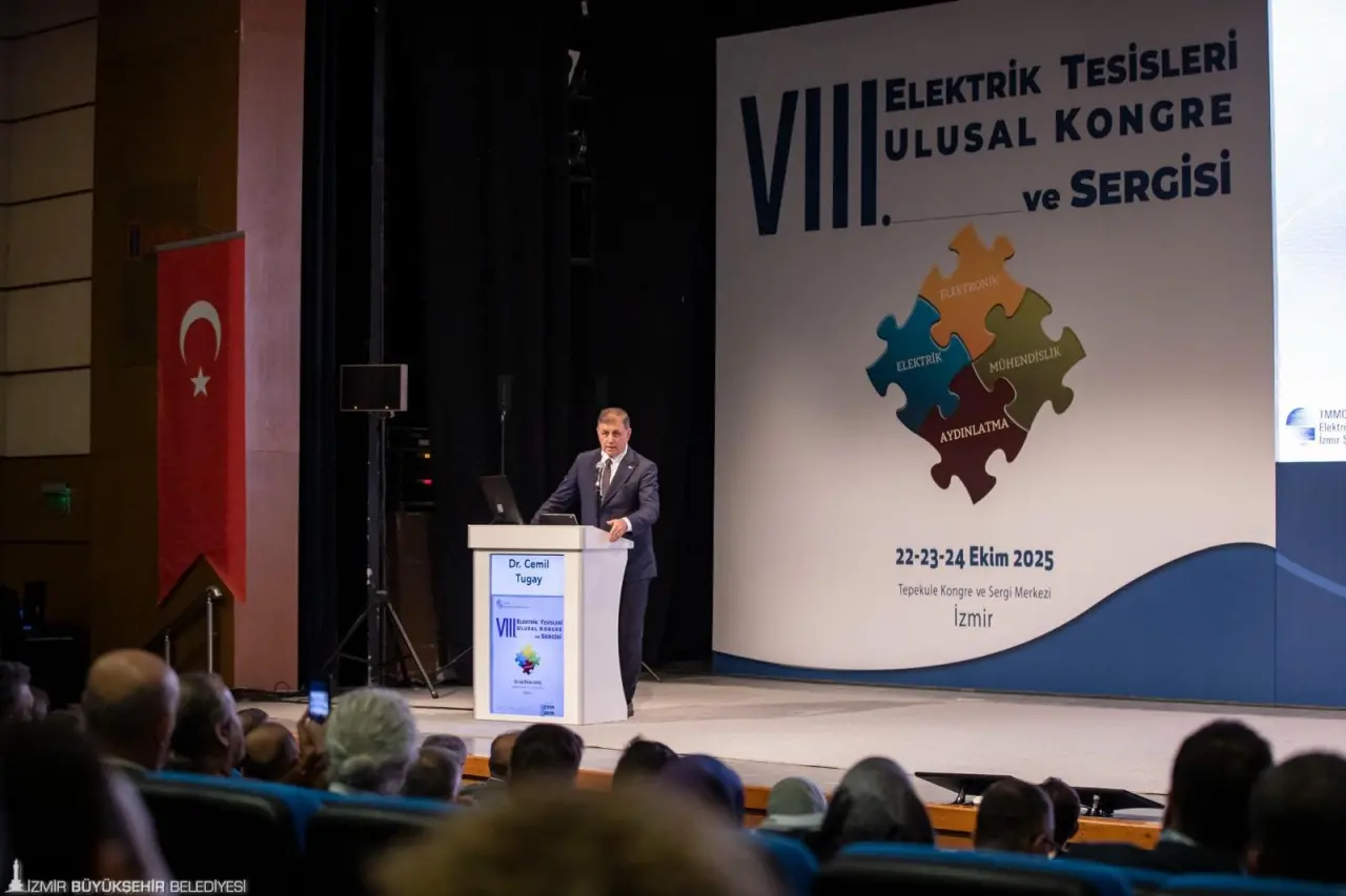 İzmir Büyükşehir Belediye Başkanı Dr. Cemil Tugay, Türk Mühendis ve Mimar Odaları Birliği (TMMOB)  Elektrik Mühendisleri Odası (EMO) İzmir Şubesi tarafından bu yıl 8’inci kez organize edilen Elektrik Tesisleri Ulusal Kongre ve Sergisi’nin açılış törenine katıldı. İzmir Tepekule Kongre ve Sergi Merkezi’ndeki etkinlik 22-23-24 Ekim 2025 tarihlerinde bilim insanları, üreticiler, tasarımcılar, uygulayıcılar ile kamu ve özel sektör temsilcilerini bir araya getirecek. Kongrenin açılış törenine Başkan Dr. Cemil Tugay’ın yanı sıra TMMOB Yönetim Kurulu Üyesi Bahadır Acar, EMO Yönetim Kurulu Başkanı Mahir Ulutaş, Aydınlatma Türk Milli Komitesi Başkanı Prof. Dr. Rengin Ünver, EMO İzmir Şubesi Başkanı Gülhan Gürler, ekonomist-gazeteci Dr. Emin Çapa, akademisyenler, sivil toplum kuruluşu temsilcileri, sektör temsilcileri ve öğrenciler katıldı.