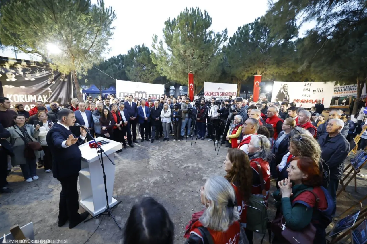 İzmir Büyükşehir Belediye Başkanı Dr. Cemil Tugay, binlerce genç için gelecek umudu olan Meslek Fabrikası’na Vakıflar Genel Müdürlüğü tarafından hukuksuz bir şekilde el konulmasının ardından başlatılan nöbetin 11’inci gününde düzenlenen basın toplantısına katıldı. Meslek Fabrikası karşısında oluşturulan Pankart Atölyesi Alanı’ndaki buluşmaya Cumhuriyet Halk Partisi İzmir İl Başkanı Çağatay Güç, CHP Gençlik Kolları Genel Başkanı Cem Aydın, TMMOB İzmir İl Koordinasyon Kurulu (İKK) Sekreteri Aykut Akdemir, milletvekilleri, siyasi partilerin temsilcileri, gençler, CHP örgütlerinin, sivil toplum kuruluşlarının ve sendikaların temsilcileri ile İzmirliler destek verdi.