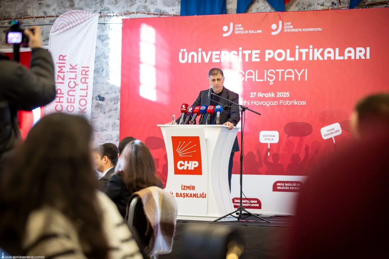 İzmir Büyükşehir Belediye Başkanı Dr. Cemil Tugay, CHP İzmir İl Gençlik Kolları tarafından düzenlenen Üniversite Politikaları Çalıştayı’na katıldı. Başta genç işsizliği, barınma ve gelecek kaygısının ele alındığı çalıştayın açılışında gençlere verdikleri desteklerden bahseden Başkan Tugay, “Siyaset şikâyet etmekten çok çözüm üretme yeridir. Ürettiğiniz çözümleri raporlayarak bizlere iletmenizi istiyoruz” dedi.