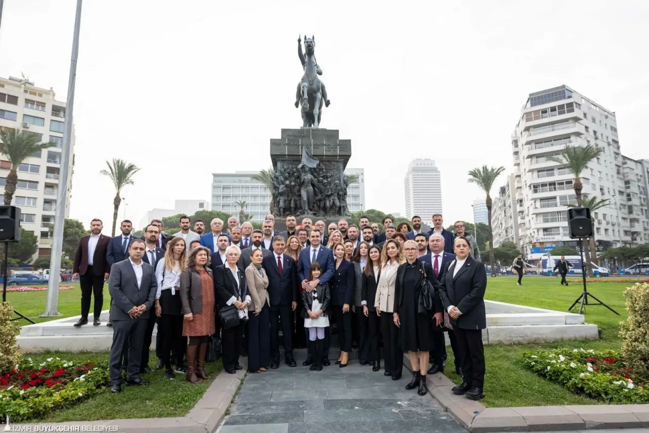 İzmir Büyükşehir Belediye Başkanı Dr. Cemil Tugay, Cumhuriyet Halk Partisi İzmir İl Başkanlığı’nın 39’uncu Olağan Kongresi’nde başkan seçilen Çağatay Güç’ün mazbatasını almasının ardından Cumhuriyet Meydanı’nda düzenlenen çelenk törenine katıldı.