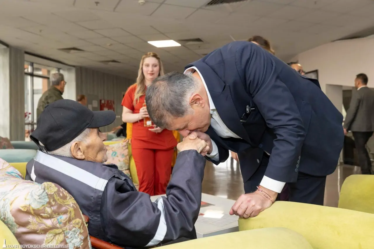 Başkan Tugay, huzurevinin her katını tek tek dolaşarak büyüklerin ellerini öpüp bayramlarını kutladı. Ziyaretini belediye başkanı olarak değil, onların bir evladı ve kardeşi olarak gerçekleştirdiğini ifade eden Başkan Tugay, huzurevi sakinleriyle samimi bir sohbet yaptı. Kendisinden herhangi bir talepleri olup olmadığını soran Başkan Tugay, huzurevi sakinlerinin sağlığı, mutluluğu ve huzurunun her zaman öncelikleri olduğunu vurguladı. İleri yaştaki yurttaşlar, Sosyal Yaşam Kampüsü ücretlerine zam yapılmadığı için Başkan Tugay’a teşekkür etti. Başkan Tugay ise, "Ben görevde olduğum sürece zam yapılmayacak" dedi.