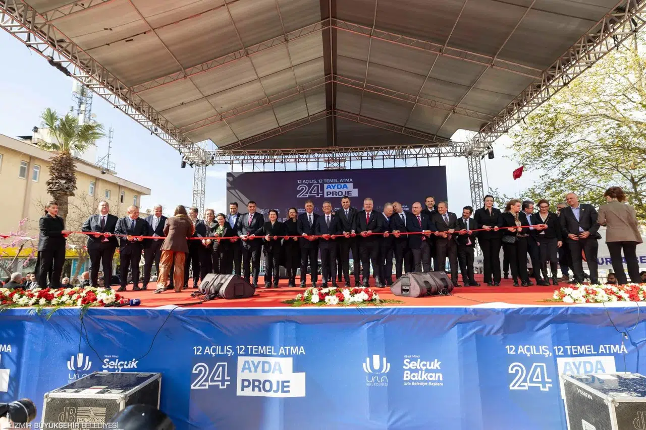 Konuşmaların ardından hep birlikte kurdele kesilerek açılışlar gerçekleştirildi. Törende Urla Belediyesi tarafından yapımı tamamlanan kreş, sosyal alan, çevre düzenlemesi, kapalı pazaryeri, halı saha, semt evi, atık getirme merkezi, kıyı düzenlemesi gibi 12 projenin açılışı yapılırken, kapalı spor salonu, kültür merkezi, hayvan barınağı, otopark, sosyal merkez, mesire alanı, kreş, kıyı ve çevre düzenlemeleri gibi 13 projenin ise temeli atıldı.