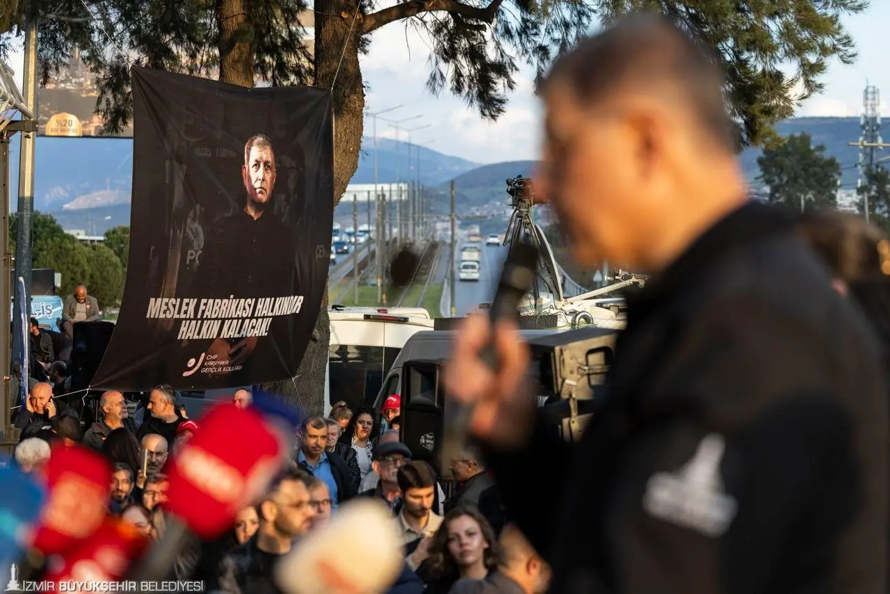 İzmir’in çok özel bir kent olduğunu vurgulayan Başkan Tugay, konuşmasını şöyle tamamladı: “Burası İzmir. Burası başka yerlere benzemez. Bu şehir, öyle kolay kolay yanlışı ve haksızlığı kabullenmez. İzmir dediğiniz şehir, kim nereden gelirse gelsin kucaklar; insanlar birbirine hoşgörüyle yaklaşır. Bazen ‘Belediye başkanı bağırmıyor’ diyorlar. Şova meraklı değilim. Bu benim namus borcum. Geçmişte de İzmir’e neler söylediler, ne iftiralar attılar, karaladılar. Bizim alnımız ak, başımız dik. Burası İzmir, biz ayaktayız. Ne yaparsanız yapın, İzmir’i yenemeyeceksiniz. Biz sizinle el ele, omuz omuza; kötülüğe ve kötülüğü sıradanlaştırmaya çalışanlara karşı birlikte mücadele etmek zorundayız. Kimsenin Meslek Fabrikası’na ya da İzmir’in hakkı olan başka bir yapıya el koyma hakkı yok. Ben Cemil Tugay; o binaya gireceğim. Bu davaları kazanacağız. Milletvekillerimiz ve Genel Başkanımız Özgür Özel ile birlikte bu ülkeyi yeniden düzlüğe çıkaracağız. Mücadeleden vazgeçmeyeceğiz ve asla yenilmeyeceğiz.”