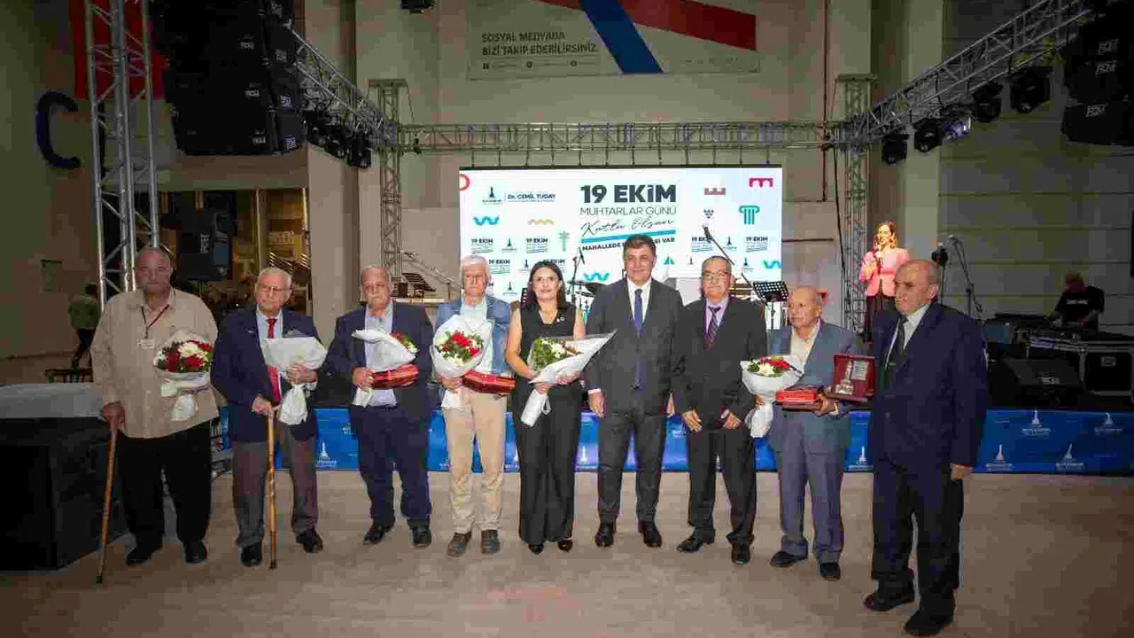 İzmir Büyükşehir Belediye Başkanı Dr. Cemil Tugay, 19 Ekim Muhtarlar Günü nedeniyle kentte görev yapan bin 296 muhtarla bir araya geldi. Fuar İzmir'de düzenlenen programa muhtarların yanı sıra İzmir Büyükşehir Belediyesi Genel Sekreter Yardımcıları Çağatay Güç ile Şükran Nurlu ve ilçe belediye başkanları da katıldı. Etkinlikte İzmir'in en genç muhtarı 28 yaşındaki Jale Altınova ile en yaş almış muhtarı 85 yaşındaki Şerafettin Yeşilçayır da sahneye çıktı. Ayrıca 8-9 ve 10 dönemdir kesintisiz görev yapan 6 muhtara da plaket verildi.