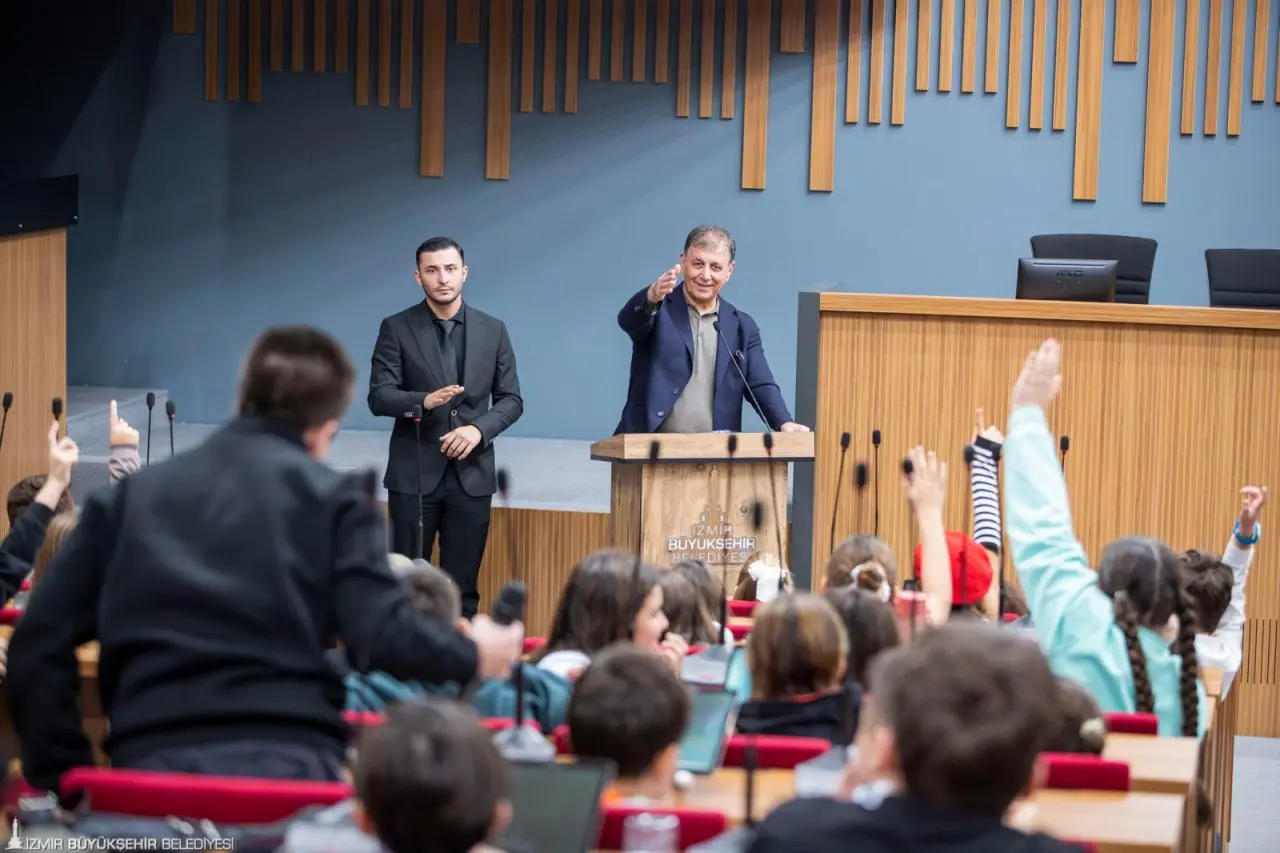 İzmir Büyükşehir Belediye Başkanı Dr. Cemil Tugay, İzmir Çocuk Meclisi 2025-2026 Dönemi’nin açılış toplantısına katıldı. Kültürpark’taki meclis toplantı salonunda düzenlenen buluşmada açılış konuşmaları öncesinde çocuk hakları ve çocuk meclisi çalışmalarını içeren videoların gösterimi yapıldı. İzmir’de yaşayan 9-14 yaş arası 199 üyenin katılımıyla oluşan Çocuk Meclisi’nin toplantısı kapsamında “Söz Çocukta” oturumu da gerçekleşti. Ayrıca Başkan Tugay’ın mecliste görev alan her çocuğa mektup yollayarak çalışmalarında başarılar dilediği mektup toplantıda gündeme geldi. Çocuklar Başkan Tugay’ın başarı dilekleri için teşekkürlerini aktardı. Başkan Tugay’a Çocuk Meclisi üyeleri tarafından İzmir Haritası içindeki parmak izlerinin yer aldığı “İzmir’de Çocuk İzi Var” temalı tablo hediye edildi.