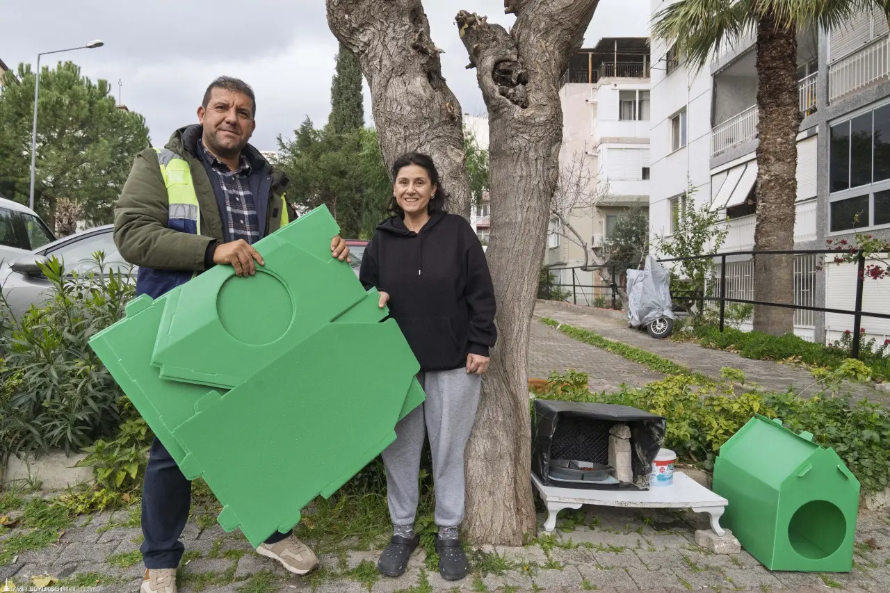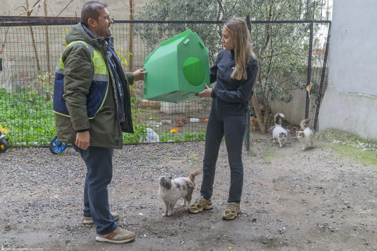 İzmir Büyükşehir Belediyesi Veteriner İşleri Dairesi Başkanlığı ekipleri, soğuk hava koşullarında barınma sorunu yaşayan sokak kedileri için portatif kedi evi hizmeti veriyor. İzmir Büyükşehir Belediye Başkanı Dr. Cemil Tugay’ın, sokakta yaşayan canlılar için sosyal medya hesabından yaptığı destek sözü, İzmirli hayvanseverler tarafından memnuniyetle karşılandı. 153 Hemşehri İletişim Merkezi’ni arayan yurttaşlar, mahallelerindeki sokak kedilerinin barınması için portatif kedi evleri talep etti. Ekipler, talep oluşturan yurttaşların mahallelerini tek tek ziyaret ederek kedi evlerini teslim etmeye başladı. Can dostlar da kendilerine sıcak yuva olacak yeni evlerini çok sevdi.