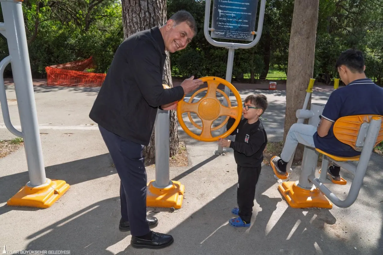 Ziyaret sırasında parkta düzenlenen bir doğum günü kutlamasına denk gelen Başkan Tugay, 10 yaşındaki Karya Göçte ile yeni yaşlarına giren Eylül ve Çınar’ın sevincine ortak olarak çocukların doğum gününü kutladı. Renkli anların yaşandığı parkta çocuklarla yakından ilgilenen Tugay, ailelerle de sohbet etti.