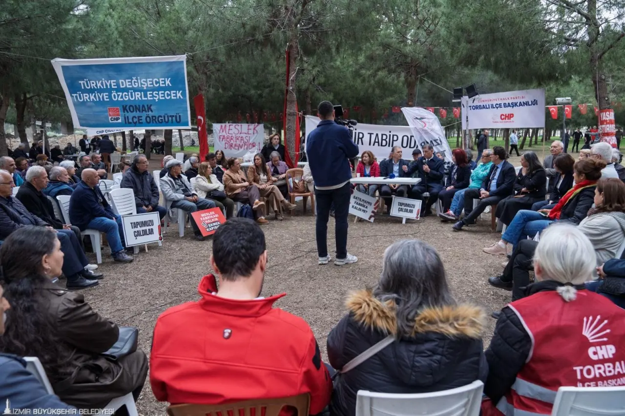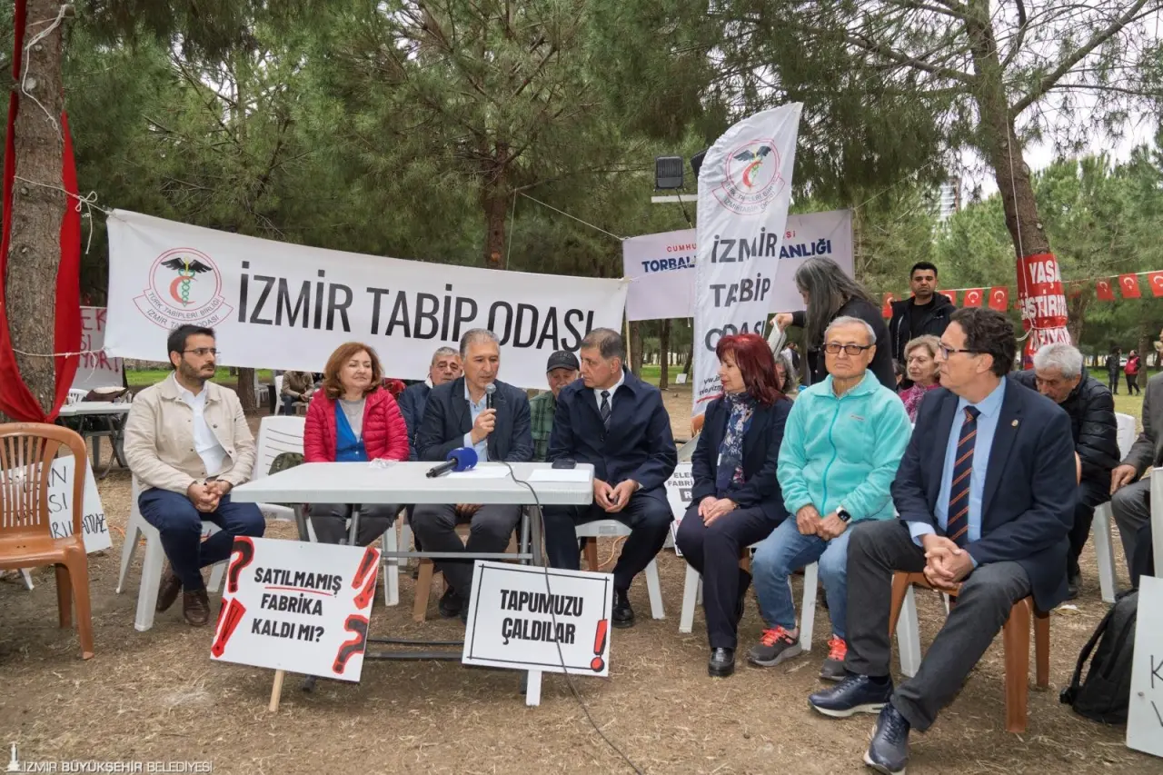 İzmir Büyükşehir Belediye Başkanı Dr. Cemil Tugay’ın Meslek Fabrikası’na el koyma girişimine karşı başlattığı nöbete destek büyüyor. İzmir Tabip Odası’nın “Sağlık Forumu” ile katıldığı süreçte mülkiyet hakkının temel bir hukuk ilkesi olduğu vurgulanırken, yaşananların “normalleştirilmemesi gerektiği” mesajı öne çıktı.