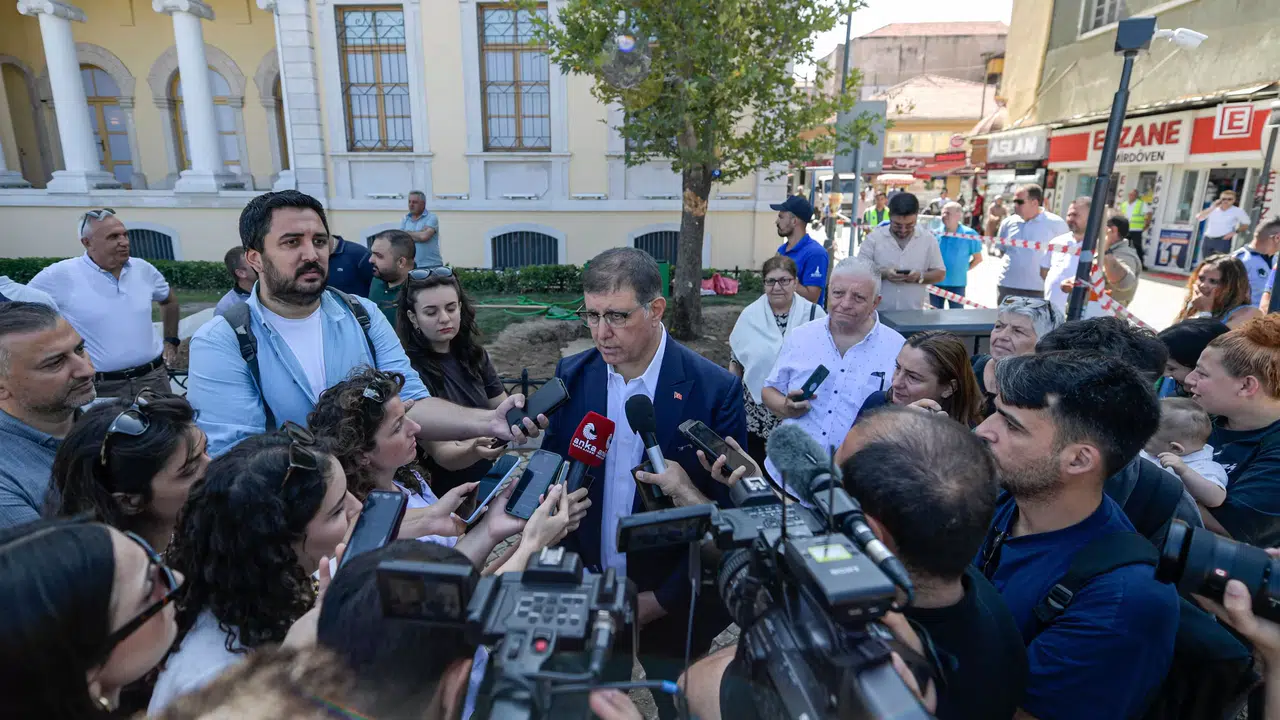 İzmir Büyükşehir Belediye Başkanı Dr. Cemil Tugay, Konak’ta gerçekleştirilen çınar ağacı dikiminde basın mensuplarının kent gündemine ilişkin sorularını yanıtladı. Başkan Dr. Cemil Tugay, su ve iklim krizi, barajlardaki su durumu, orman yangınları, İzmir Körfezi’nin temizliği, İzmir Büyükşehir Belediyesi’ndeki personel yönetimi ve yerel yönetimlere ilişkin sorular doğrultusunda açıklamalarda bulundu.