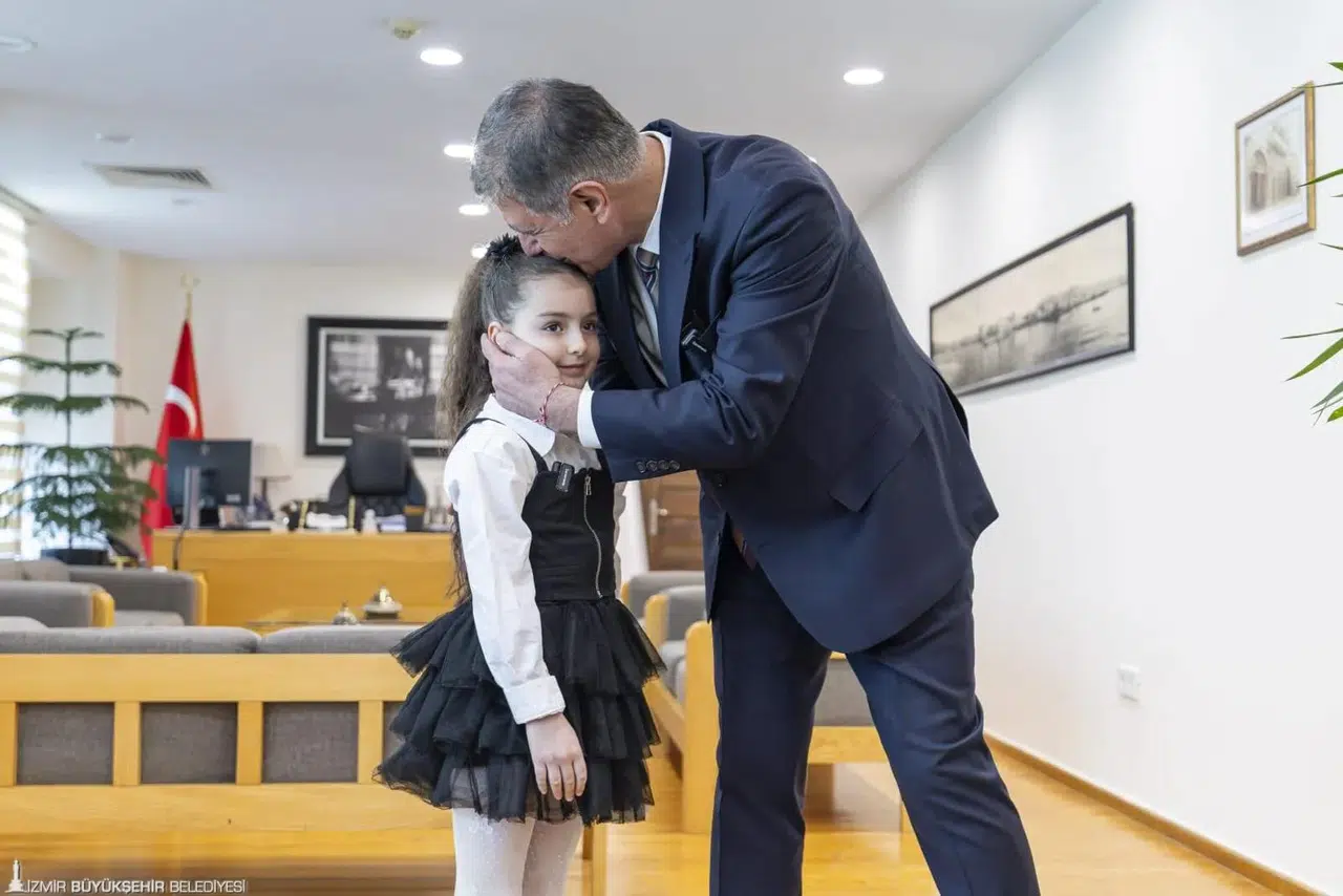 İstiklal Marşı’nın kabulünün 105. yılında, İzmir Büyükşehir Belediye Başkanı Dr. Cemil Tugay, 4 yaşından beri 10 kıtasını ezbere okuyan 7 yaşındaki Meryem Esila Şen ve ailesini makamında ağırladı. Minik Şen’le keyifli bir sohbet gerçekleşirken, Başkan Tugay hediyeler de takdim etti.