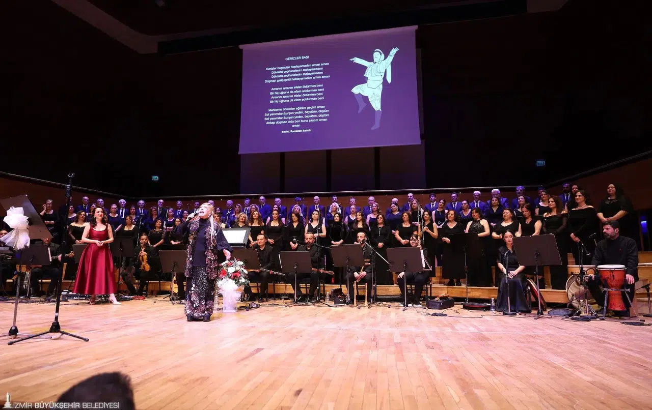 İzmir Büyükşehir Belediyesi Türk Halk Müziği Korosu, AASSM’de şef Öznur Korkmaz yönetiminde, "Anadolu’nun Rengi Köklerin Sesi" adlı konser düzenledi. İzleyicilerin arasında yer alan Türk Halk Müziği’nin unutulmaz ismi Bedia Akartürk, sahneye davet edildi. 84 yaşındaki Akartürk, halk müziğinin sevilen türkülerinden mini bir konser verdi. Bağlama ustası ve halk müziğinin büyük isimlerinden Musa Eroğlu'nun bestelediği "Mihriban" türküsünü seslendiren Akartürk’e, salondakiler hep bir ağızdan eşlik etti. Sahnede duygulu anlar yaşayan Akartürk, türkülerin çok değerli olduğunu belirterek "Türkülere lütfen sahip çıkın. Türküleri yaşatın, türküler ölmesin" dedi.