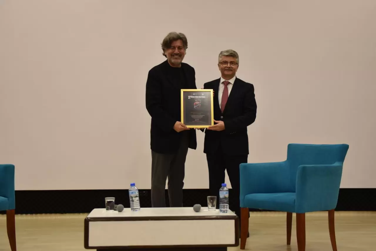 Etkinliğin sonunda EÜ Rektör Yardımcısı Prof. Dr. Mehmet Ersan tarafından Birol Güven ve Can Ulkay’a “Teşekkür Belgesi” takdim edildi.