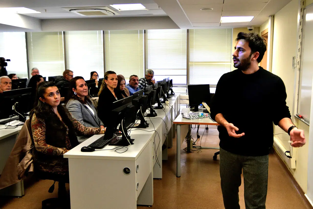 Yaşar Üniversitesi Dr. Öğretim Üyesi Mert Seven tarafından verilen Temel Bilgisayar ve İnternet Kullanımı eğitimi, üniversitenin bilgisayar dersliğinde uygulamalı olarak gerçekleştirildi. Muhtarlar, dijital araçların kamu hizmetlerinde daha etkin kullanımı konusunda bilgi edindi.