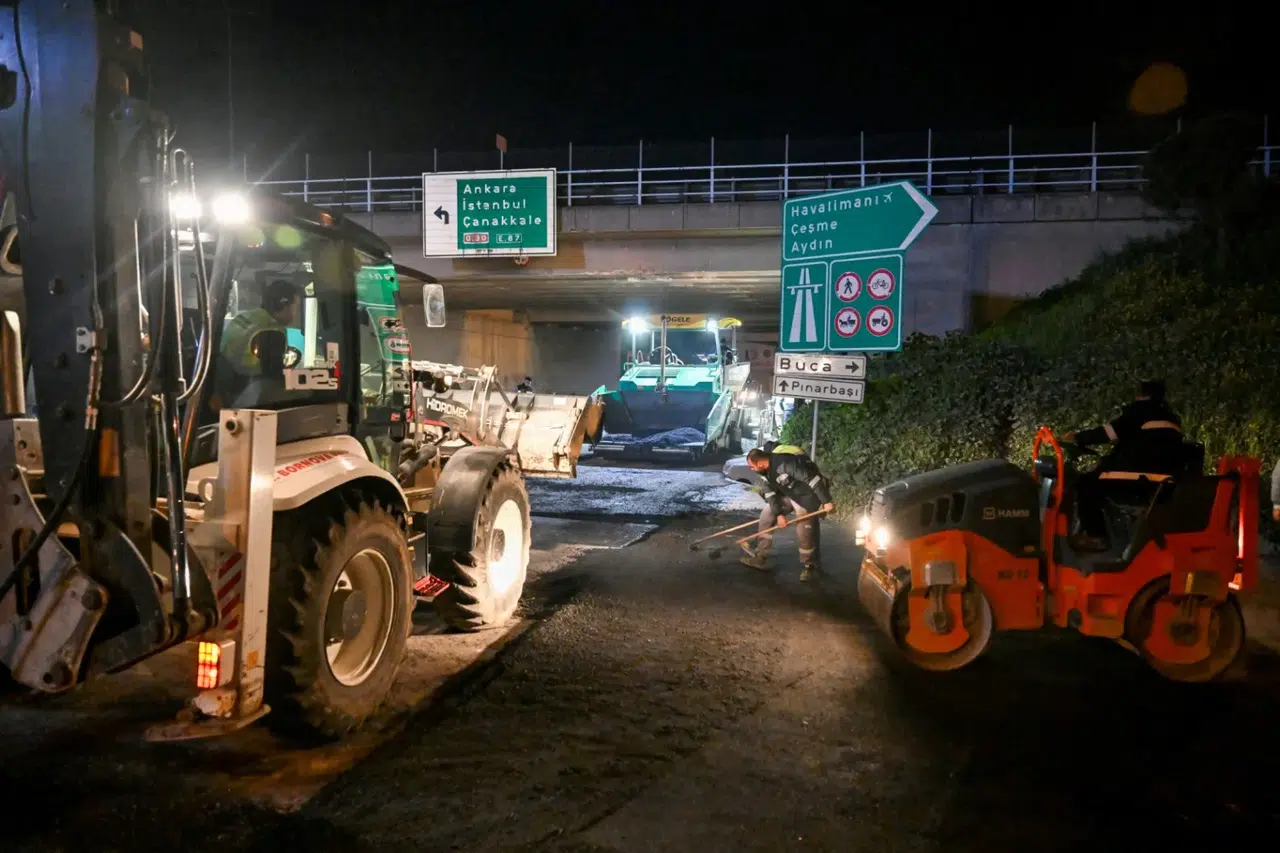 Egemenlik Mahallesi Aydınlar Caddesi’nde, Kara Nakliyeciler, Dökümcüler ve Ayakkabıcılar Sitesi’nin yanı sıra Çeşme–Aydın Otoyolu bağlantı yolu olarak kullanılan ve ağır tonajlı araçların yoğun şekilde tercih ettiği güzergahta asfalt serimi yapıldı. Gün içinde oluşabilecek trafik yoğunluğu göz önünde bulundurularak çalışma gece geç saatlerde başladı, sabahın ilk ışıklarına kadar aralıksız sürdü. Yoğun kullanıma bağlı olarak yıpranan yol zemininde yapılan yenileme çalışmasıyla hem sürüş güvenliği artırıldı hem de ulaşım konforu yükseltildi.