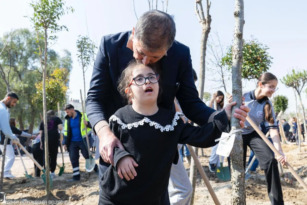 Ağaçlandırma töreninde konuşan Başkan Tugay, medeni şehirlerin ağacına ve doğasına sahip çıktığını belirterek, “Gittiğiniz bir yerde yeşil doku ne kadar yoğunsa, oradaki insanlar da doğayı korumayı başarmış demektir. Doğa ile birlikte yaşamayı öğrenmeliyiz. Belediyeler çalışmalar yapsa da asıl sorumluluk her yurttaşındır; çocukluktan itibaren doğayı koruma bilincini kazanmak ve yaşam alanlarımızı korumak herkesin görevidir” dedi.