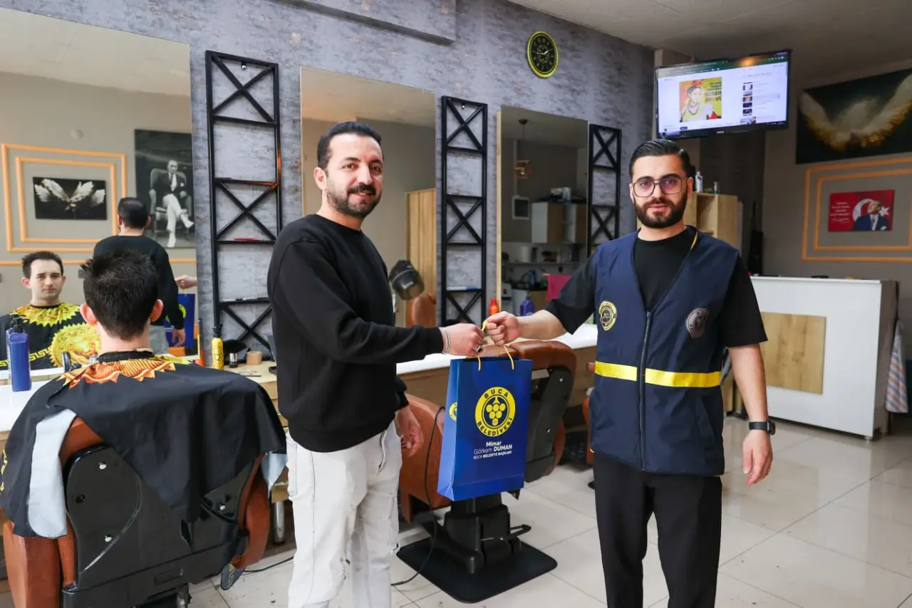 Buca Belediyesi, bayram öncesinde ilçedeki berber esnafını unutmadı. Bayram yoğunluğu yaşayan esnafa destek olmak amacıyla hijyenik ve modern tasarımlı yeni önlükler dağıtıldı. Çalışma kapsamında belediye ekipleri ilçenin dört bir yanındaki dükkanları tek tek ziyaret etti. Bayram mesaisine başlayan berberlere, belediyenin logosunu taşıyan şık ve dayanıklı önlükler hediye edildi.