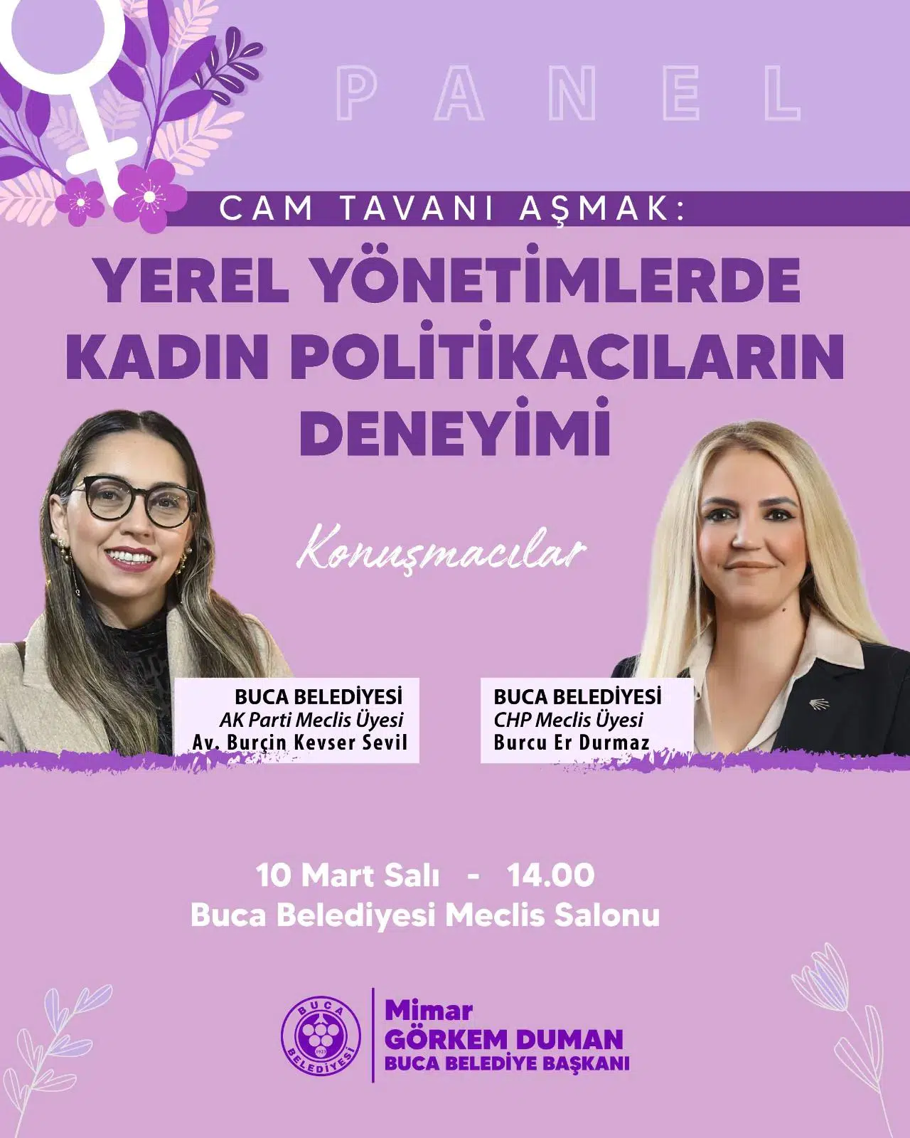 Kadınların siyasetteki görünmez engelleri Buca’da tartışmaya açılıyor. CHP ve AK Parti meclis üyelerini aynı platformda buluşturan panelde, yerel yönetimlerde kadın temsilinin önündeki engeller ve çözüm yolları mercek altına alınacak.