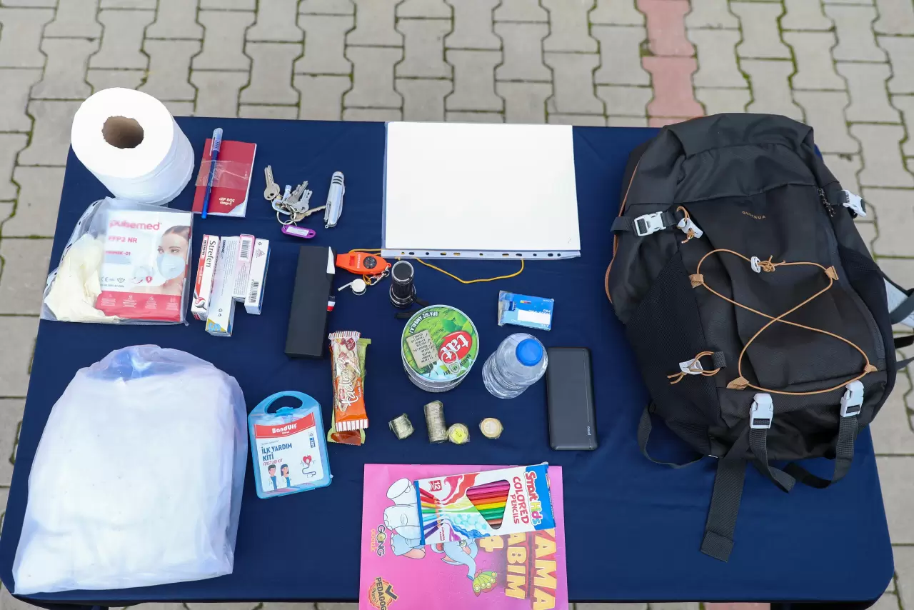 “Deprem çantası içerisinde afet durumunda ihtiyaç duyulabilecek tüm malzemelerin bulunması önem taşımaktadır. Tüm aile üyelerine yetecek ölçüde su, yüksek kalorili gıda, hijyen malzemeleri, önemli belge fotokopileri, ilkyardım malzemeleri ve mevsim şartlarına uygun giyeceklerin deprem çantasına konulması gerekmektedir. Kullandığımız ilaçlar reçeteleri ile bulundurulmalı, enerji kesintisi sorunları yaşanacağı için taşınabilir şarj aleti ve pil yer almalıdır. Doğru bilgi almak adına bir radyo, el feneri, yardım ekiplerine hızlı bir şekilde sesli uyarıda bulunabilmek için düdük bulundurulmalıdır. Çantamıza koyacağımız çok amaçlı bir çakı, afet sonrası bize önemli bir kolaylık sağlayabilir. Bankacılık sisteminde yaşanacak sorunlardan etkilenmemek için çantamızda nakit para olmalıdır. Ayrıca, evimizin ve araçlarımızın yedek anahtarları da afet çantasında bulunması gereken önemli kalemlerden biridir.”