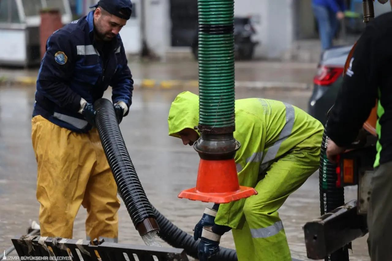 İzmir Büyükşehir Belediyesi’ne bağlı tüm ilgili birimler, 412 iş makinesi, 200 pompa ve 1365 personel ile sahada görev yapıyor. Çalışmalar AKOM koordinasyonunda anlık olarak takip edilirken, özellikle güney ve doğu ilçelerde yağışın önümüzdeki saatlerde etkisini artırması bekleniyor. Zabıta Dairesi Başkanlığı ekipleri de 202 personelle sahada aktif görev yaparak meydana gelebilecek olumsuzluklara karşı önleyici, yönlendirici çalışmaları yerine getiriyor. İzmir Büyükşehir Belediyesi yetkilileri, alçak kesimler, dere yatakları ve geçmişte su baskını yaşanan bölgelerde yaşayan vatandaşlara dikkatli olmaları uyarısında bulundu. Zorunlu olmadıkça trafiğe çıkılmaması ve olası su baskınlarına karşı tedbir alınması çağrısı yapılırken, yaşanabilecek olumsuzlukların153 ve 185 çağrı merkezlerine bildirilmesi istendi.
