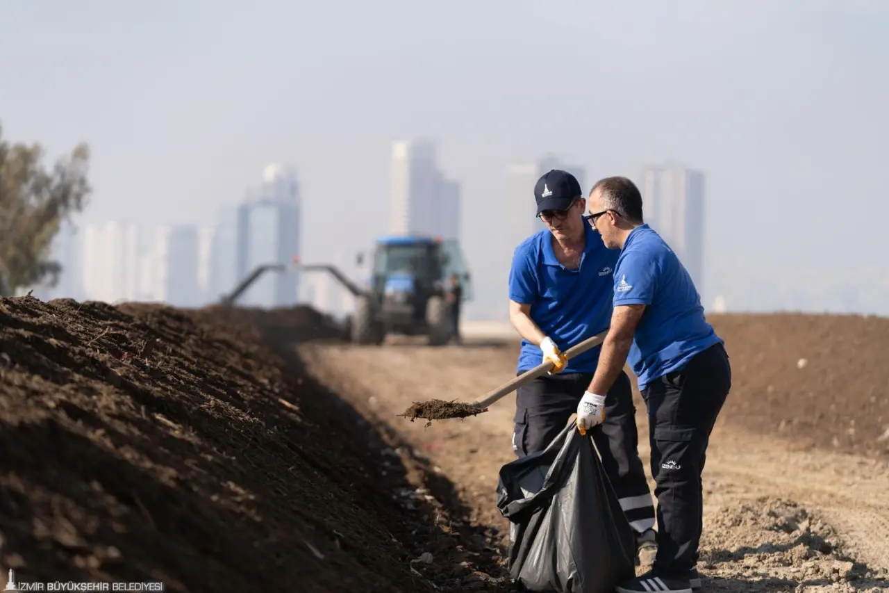 İzmir Büyükşehir Belediyesi, park ve bahçelerden çıkan günlük yeşil atıkları işleyerek kompost gübreye dönüştürüyor. Parklarda ve yangından zarar gören tarlalarda toprakla buluşan gübrelerle ekolojik ve ekonomik dönüşüm gerçekleştirilirken yılda 2 buçuk milyon lira tasarruf sağlanıyor.