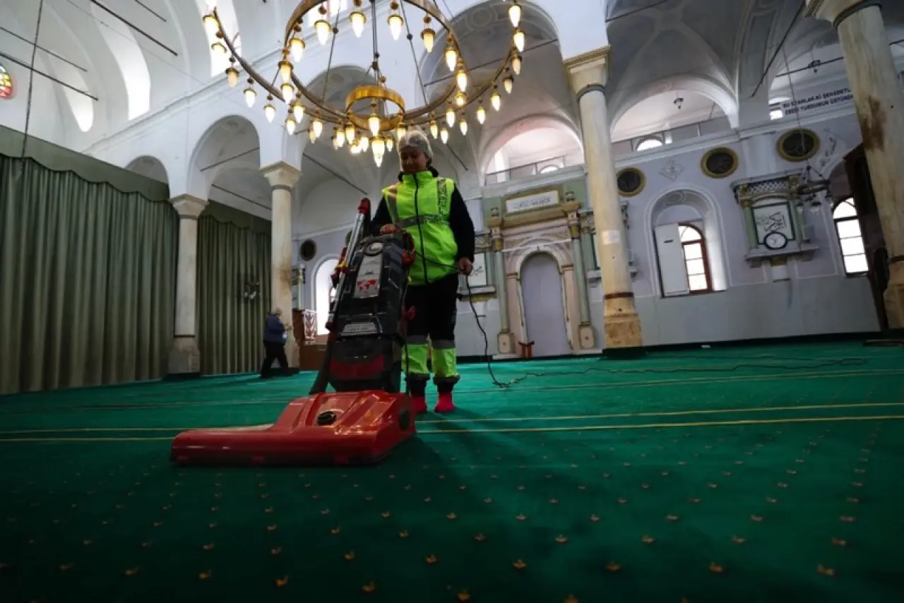 Çeşme Belediyesi, Ramazan öncesi camilerde detaylı temizlik yaptı, hijyenik bir ortam sağlamayı hedefledi. İhtiyaçlar Ramazan boyunca hızlıca karşılanacak.